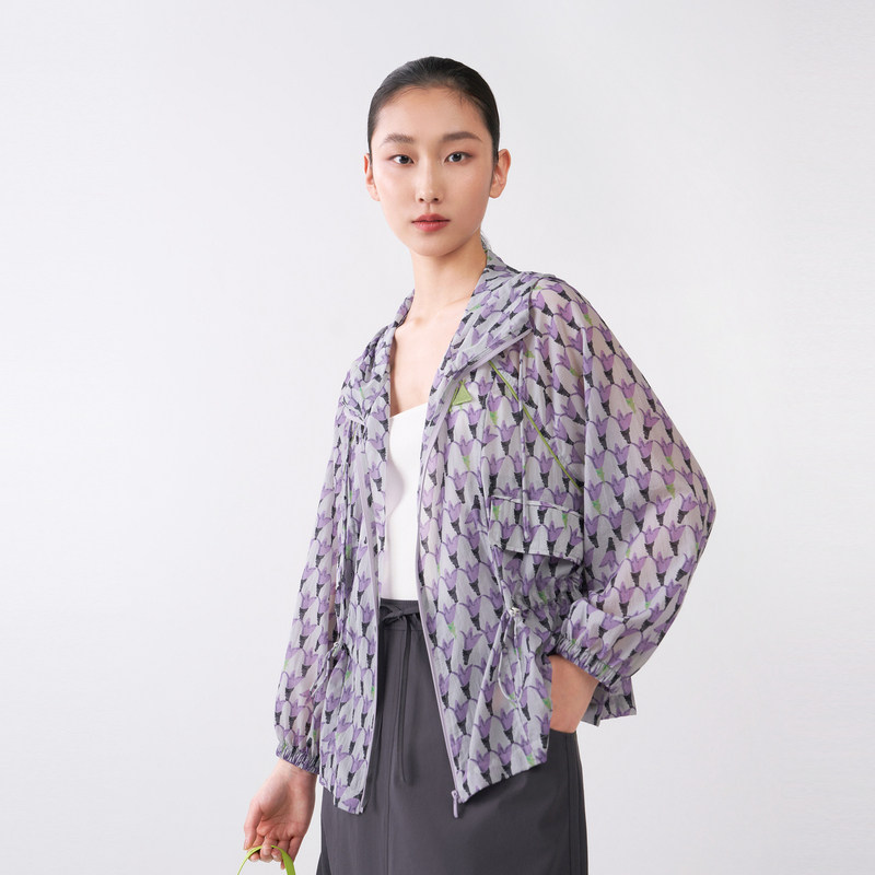[专柜同款]Yifini/易菲宽松系带收腰印花连帽百搭外套春秋装新款