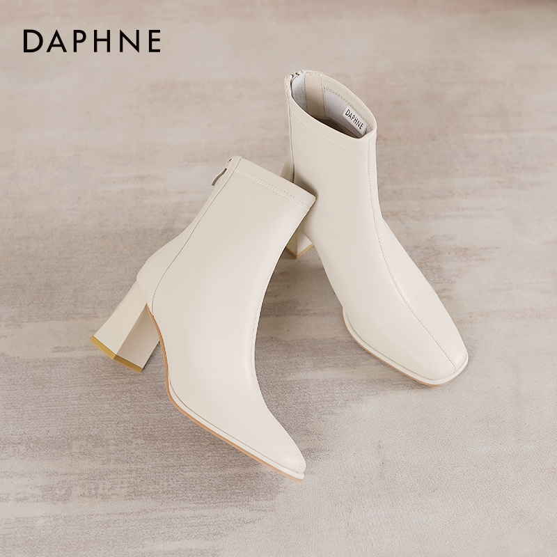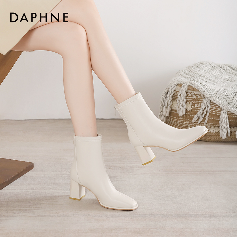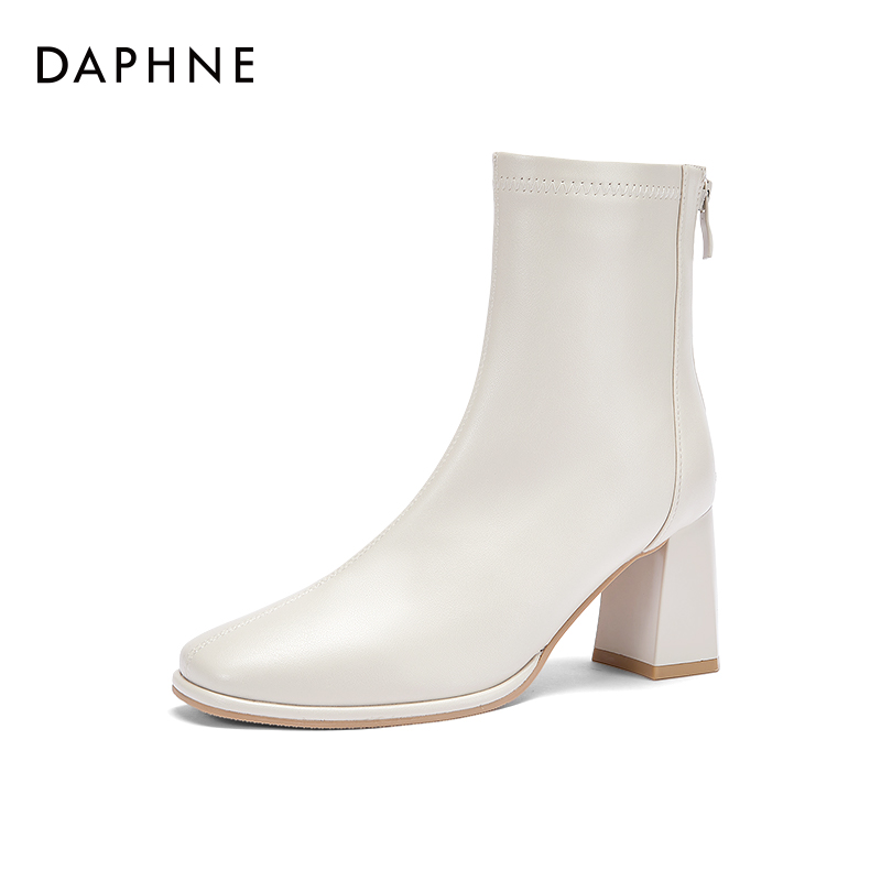 达芙妮高跟鞋女靴子女2025新款法式瘦瘦靴真皮单靴白色短靴女秋冬