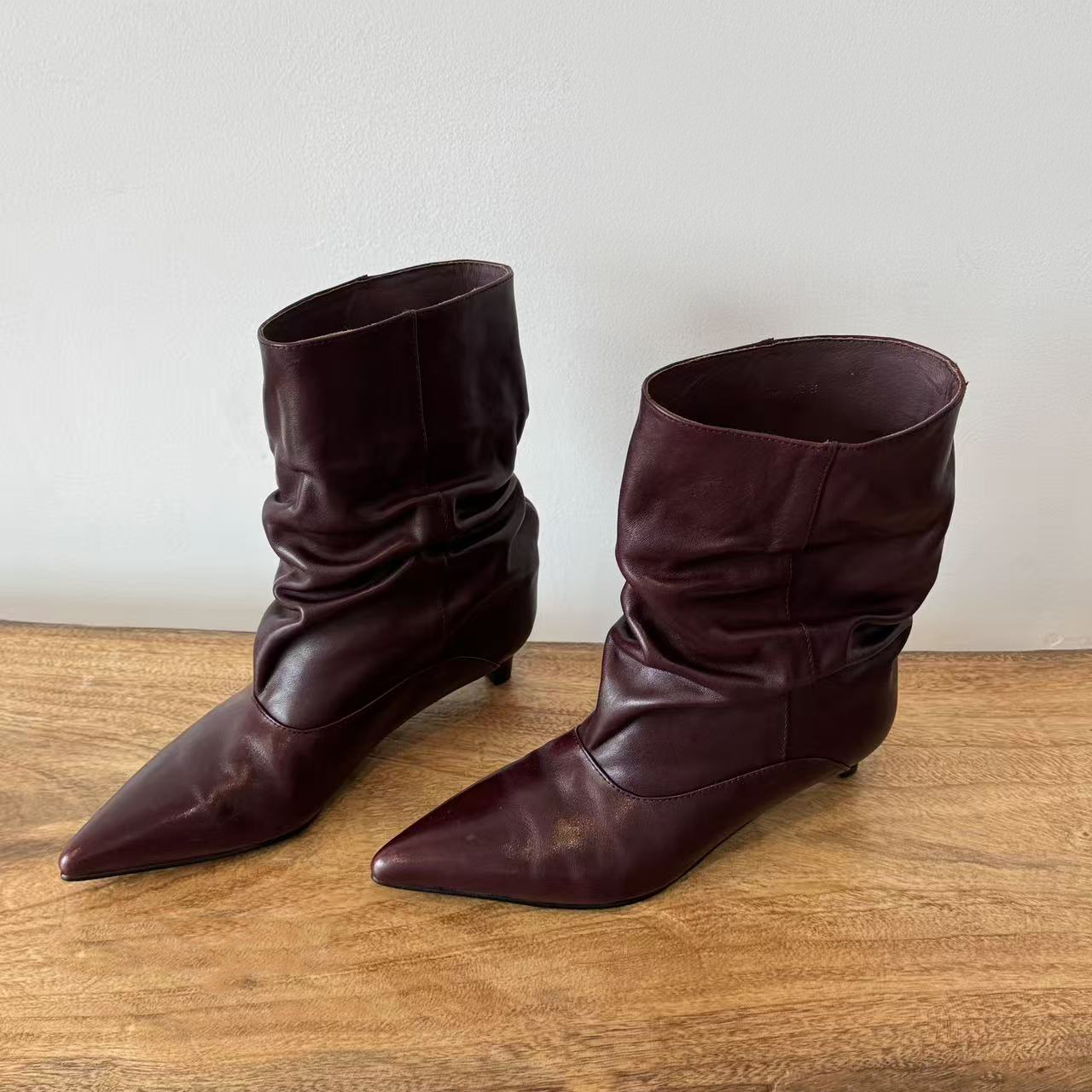 泓阳琳~棕色细跟小短靴女2025冬季新款爆款巨好看超火女款马丁靴