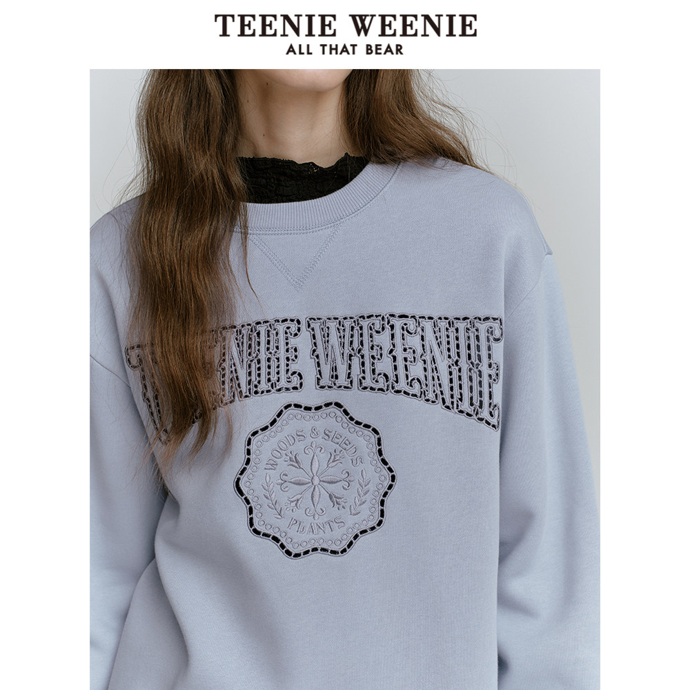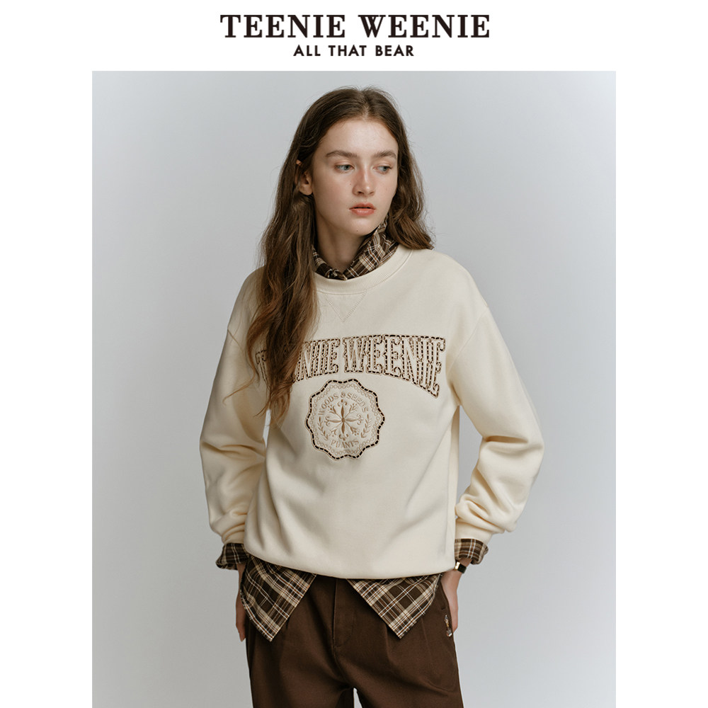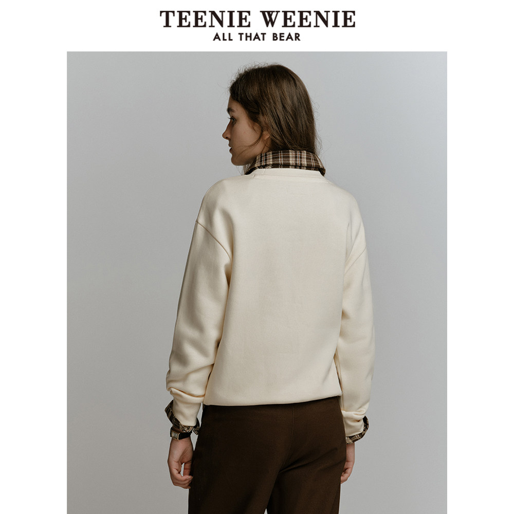 TeenieWeenie小熊奥莱冬季加绒圆领套头卫衣宽松时髦上衣女