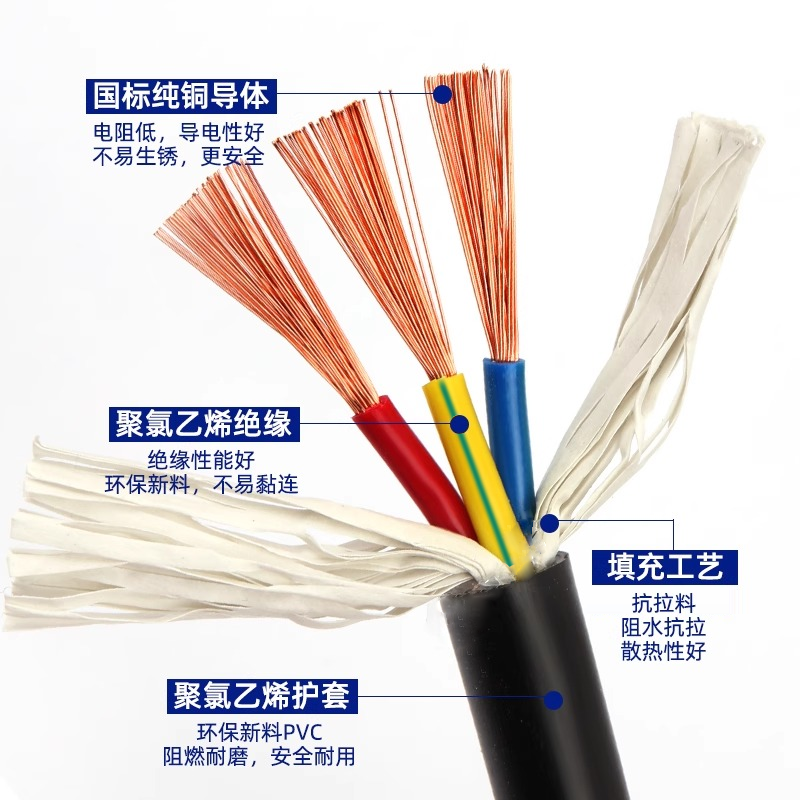 国标纯铜234芯电源线1.5 2.5 4 6平方电缆线户外RVV护套软线家用