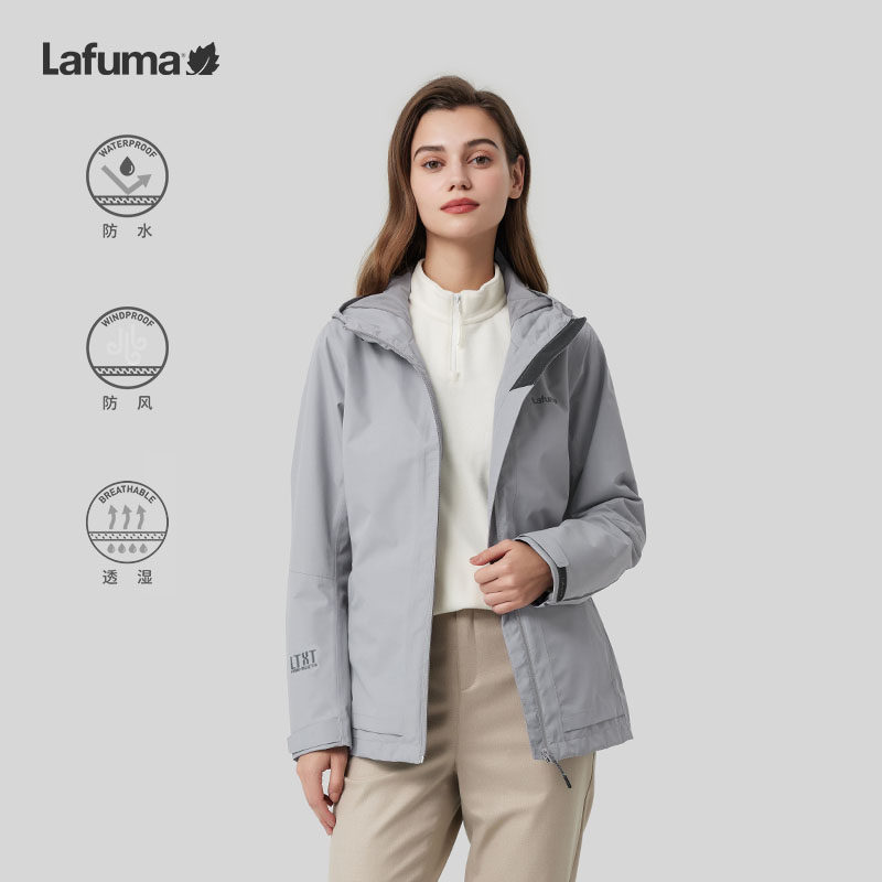LAFUMA乐飞叶户外秋冬三合一抓绒内胆防水风衣女士夹克