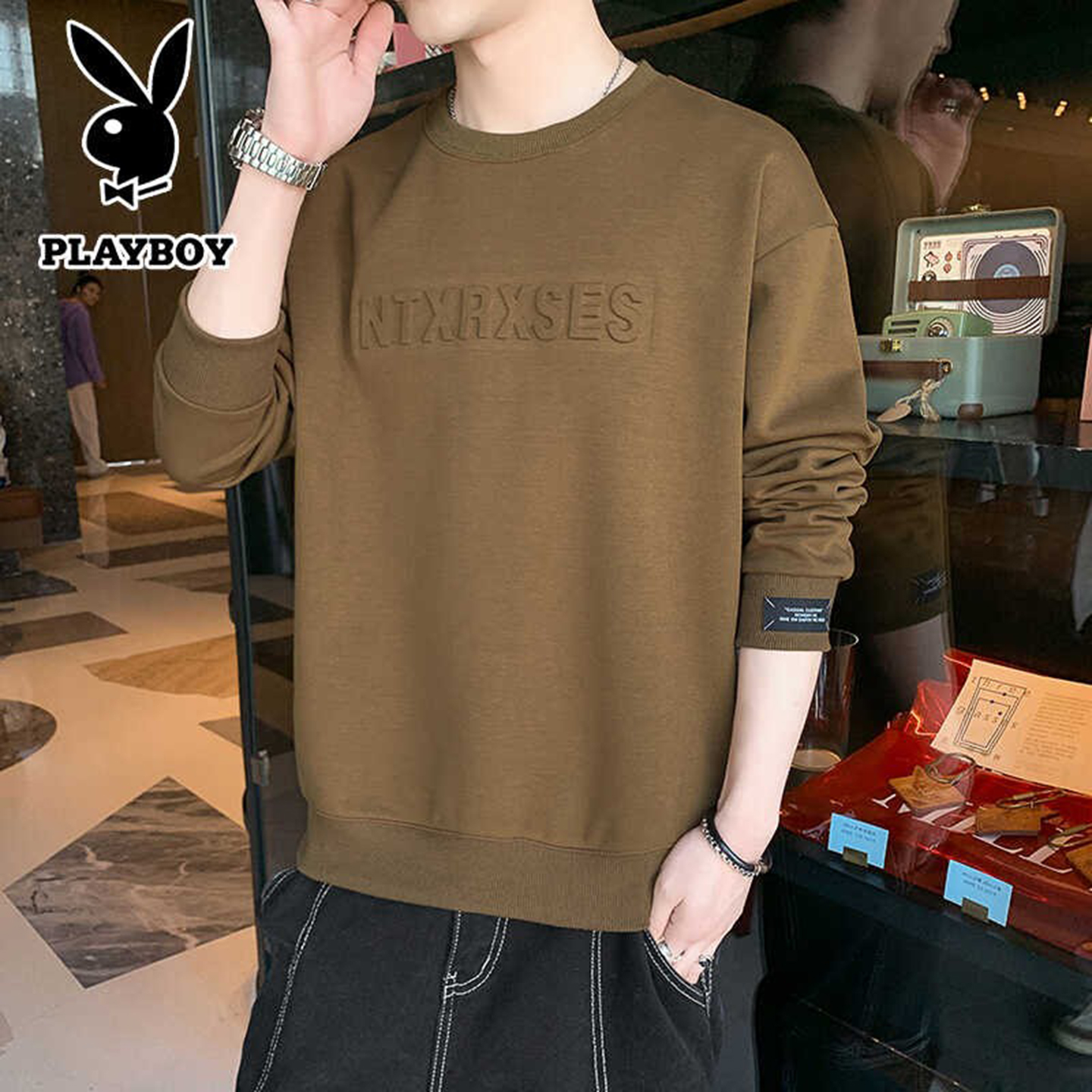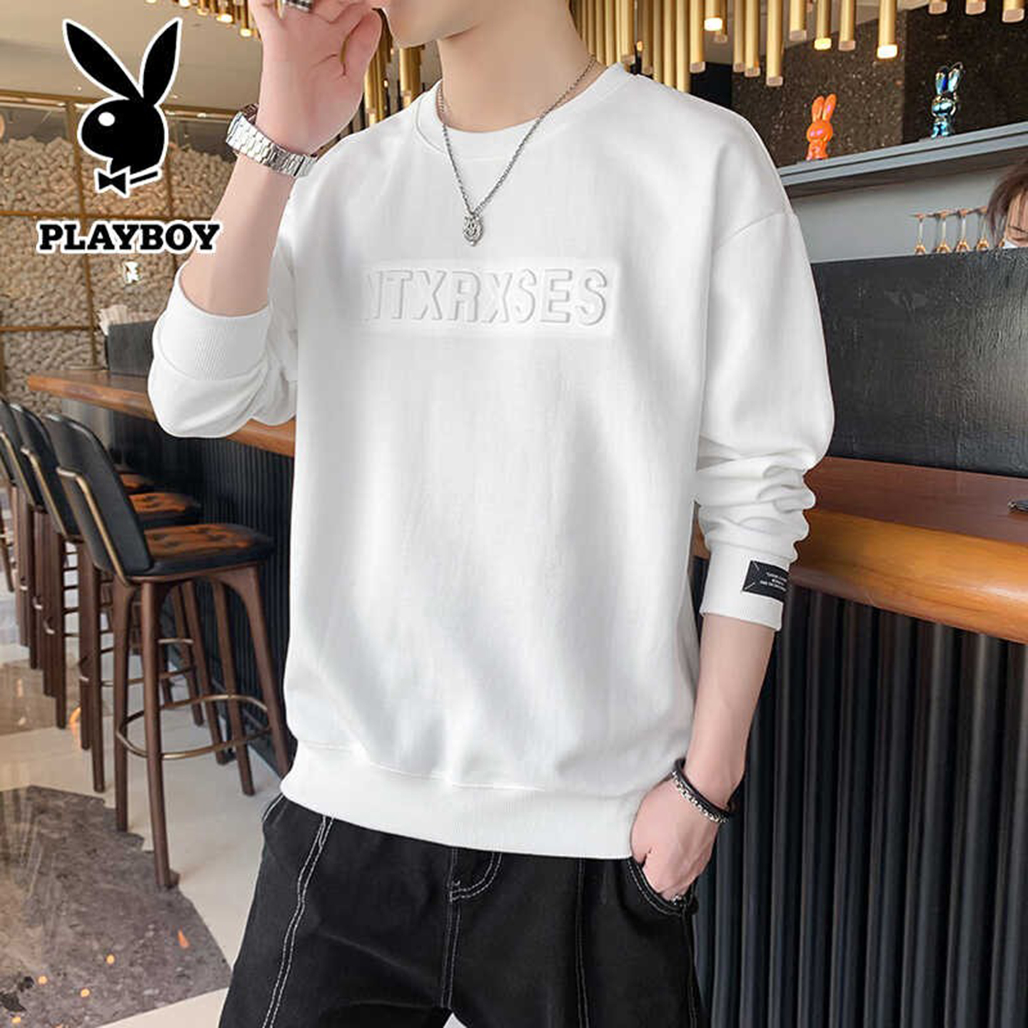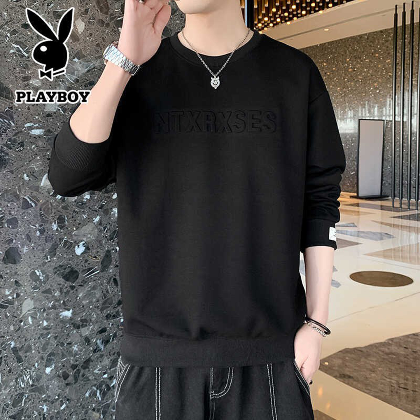 花花公子圆领男士卫衣春秋季潮流休闲长袖t恤套头百搭上衣打底衫