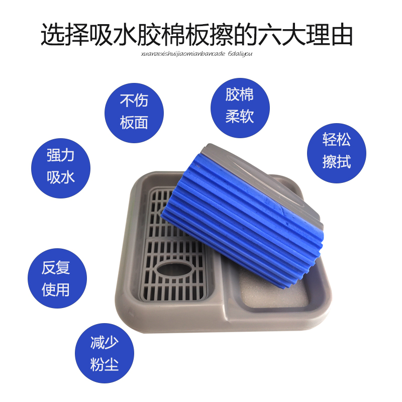 优质胶棉黑板擦水溶性无尘粉笔吸水海绵刷白板笔擦套盒清洗+装置