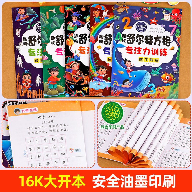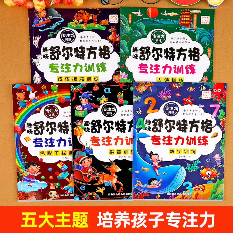 全套5册舒尔特方格专注力训练3到6岁以上提高注意力一年级二年级小学生益智书籍趣味游戏书培养孩子耐心抗干扰能力练习册教材12岁