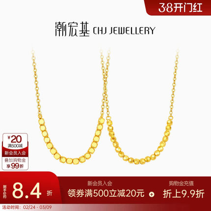 潮宏基至简足金项链黄金套链蹦迪珠方糖爆闪锁骨链计价妇女节礼物