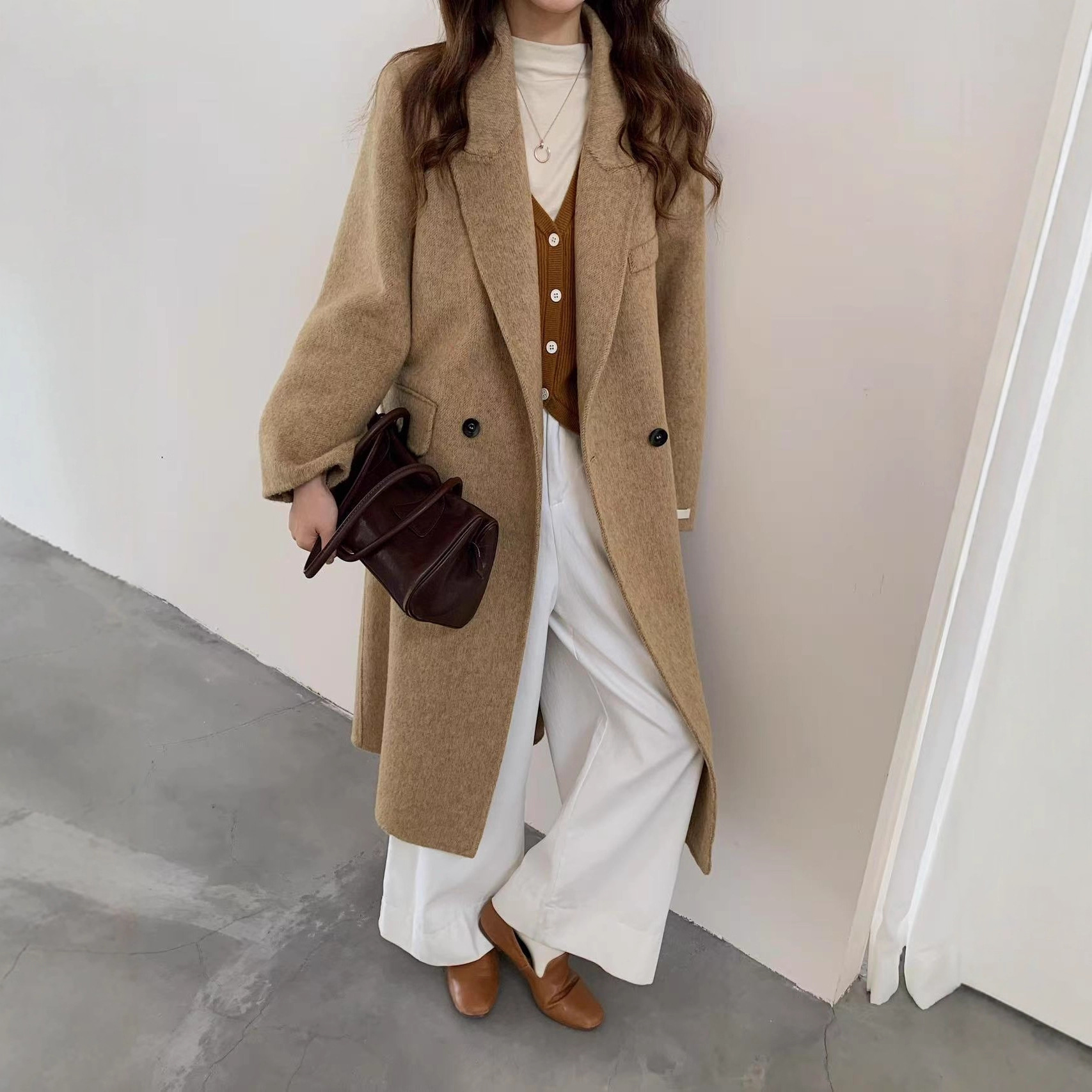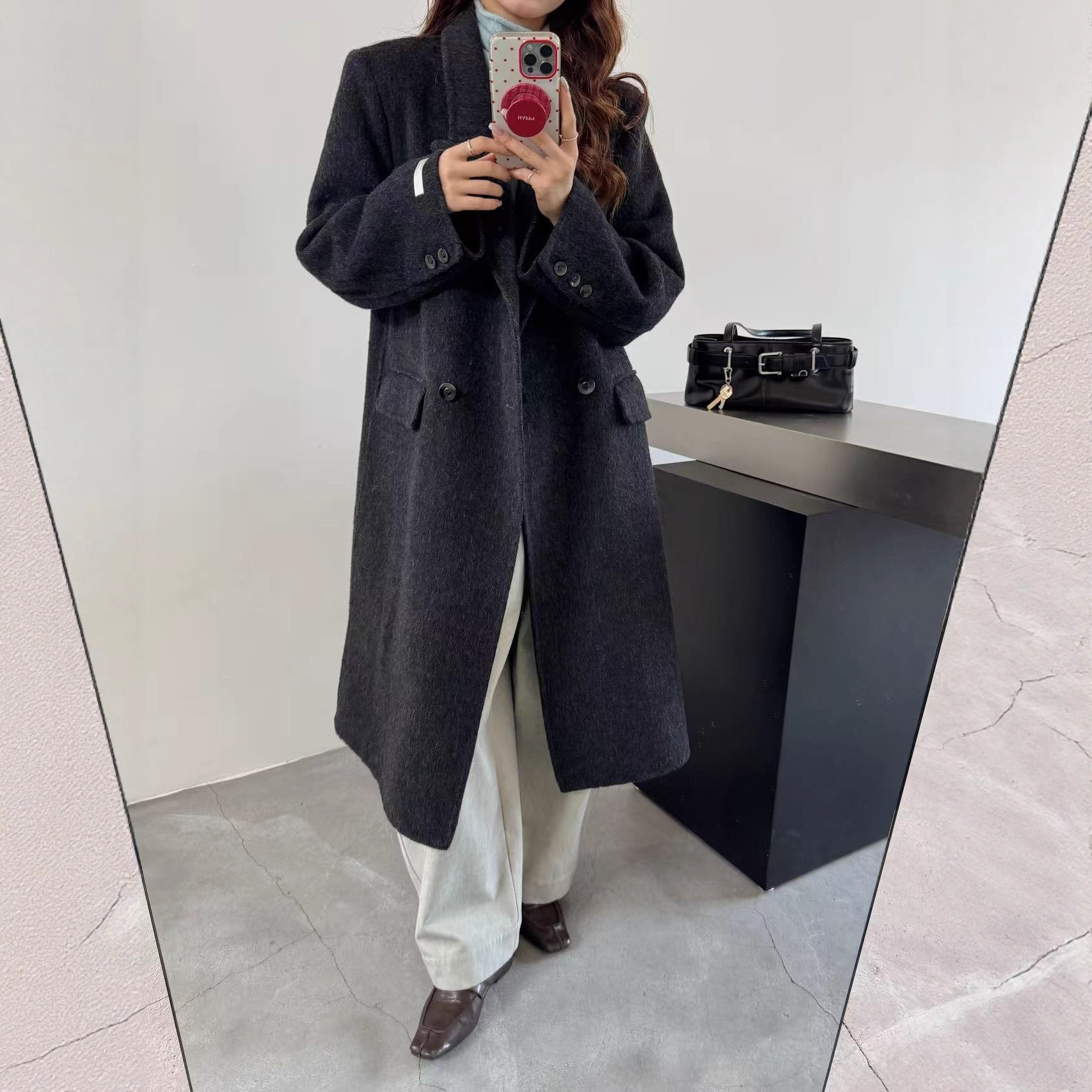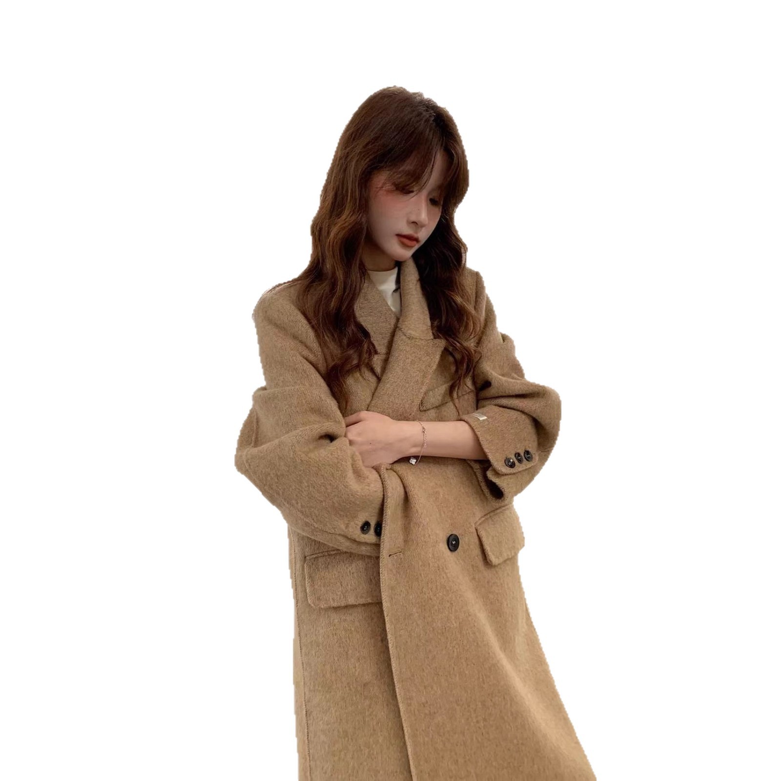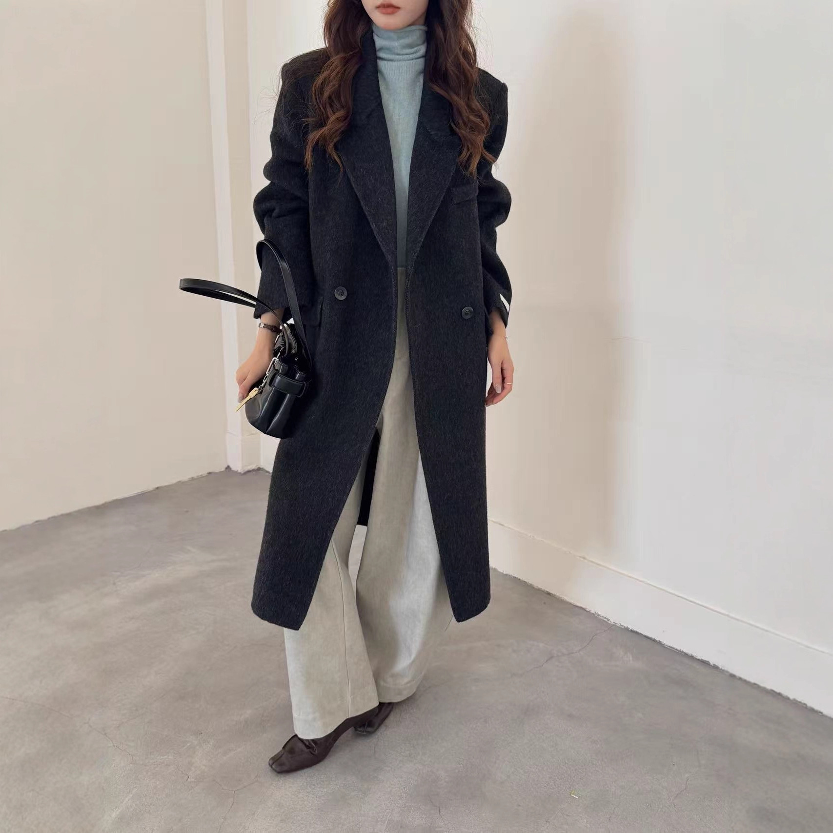 正肩通勤双面羊毛大衣 新款加厚简约工作保暖中长款羊绒毛呢外套