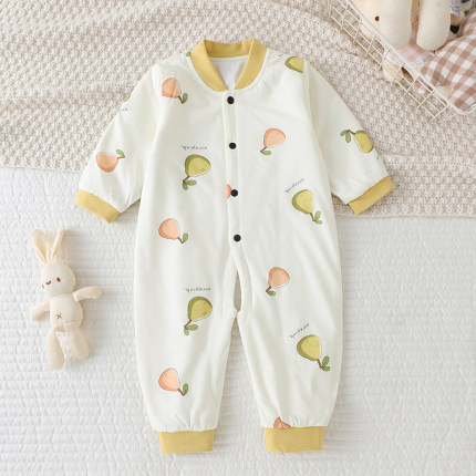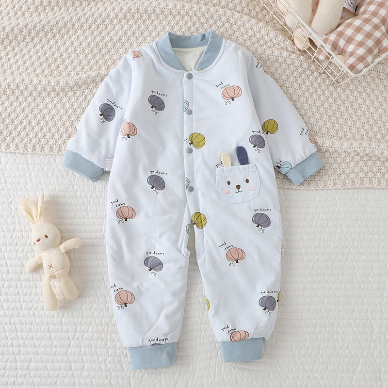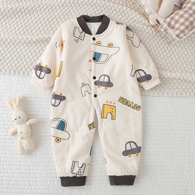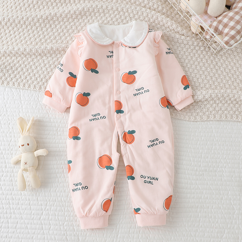 偶园新生婴儿连体衣春秋装纯棉薄棉哈衣男保暖棉衣女宝宝夹棉爬服