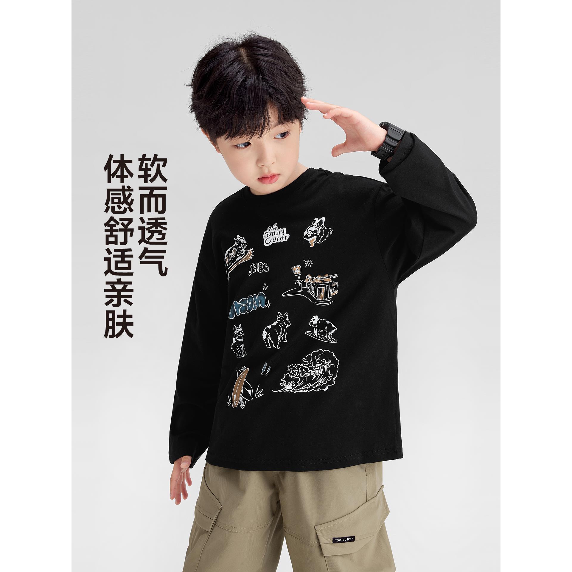 左西童装男童长袖t恤儿童纯棉打底衫2025新款秋装男孩大童上衣潮