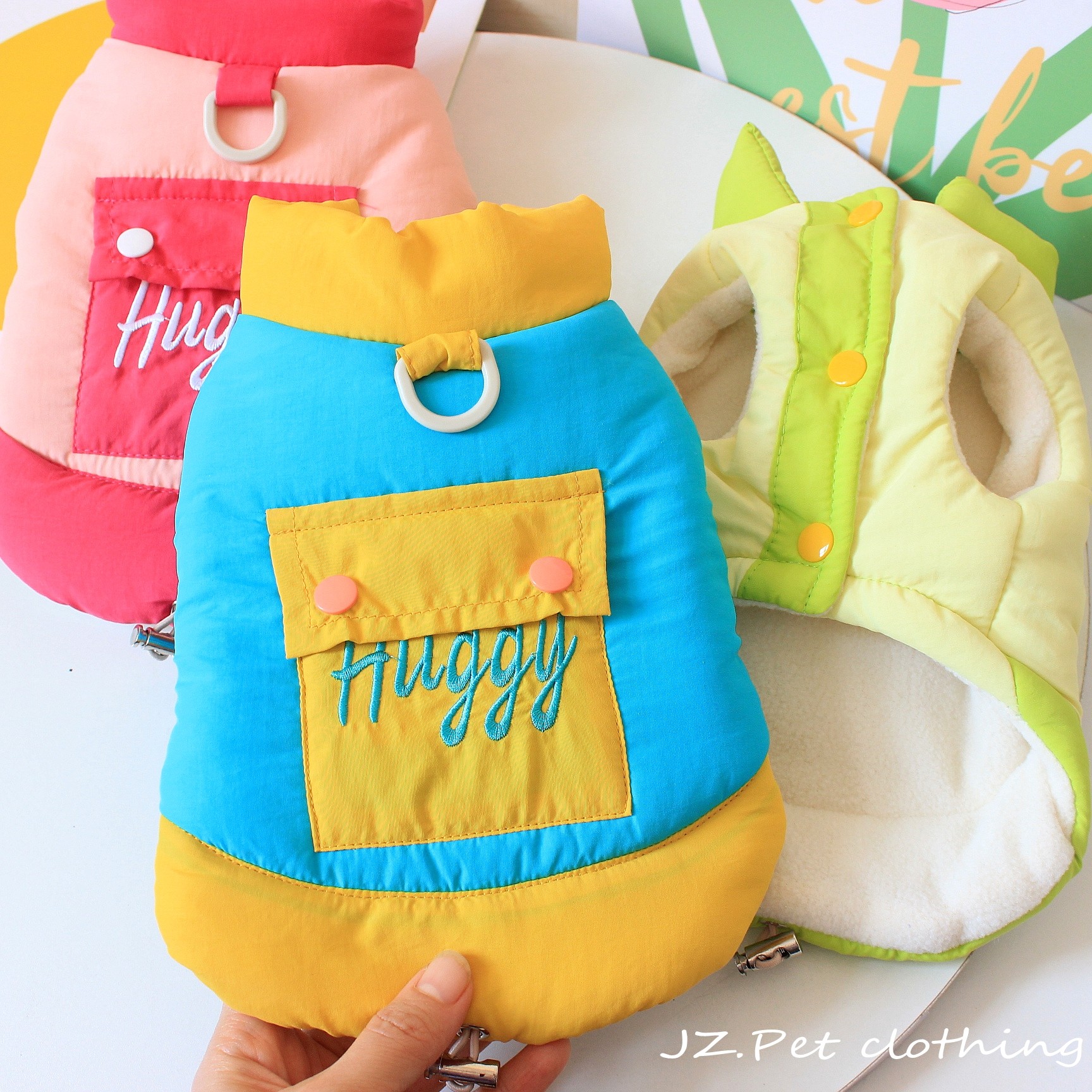 宠物狗狗衣服秋冬装马甲小型犬泰迪比熊博美加厚加绒保暖牵引棉衣