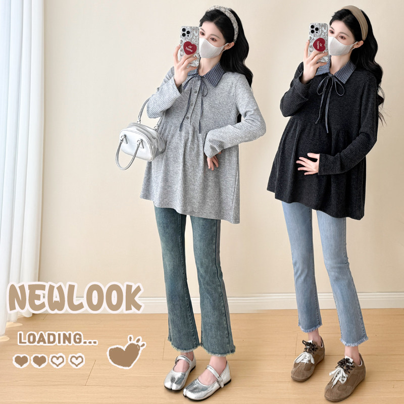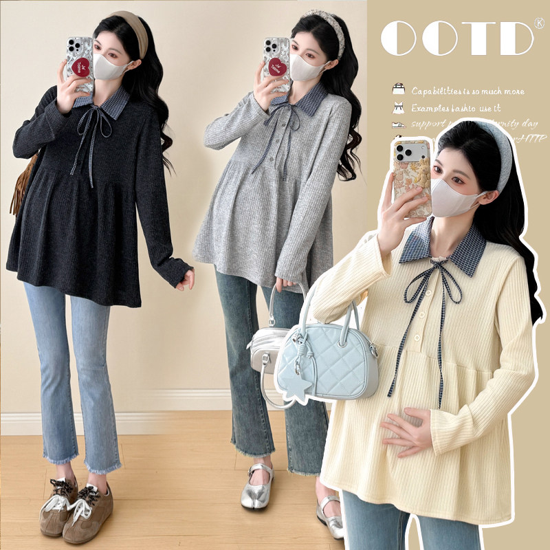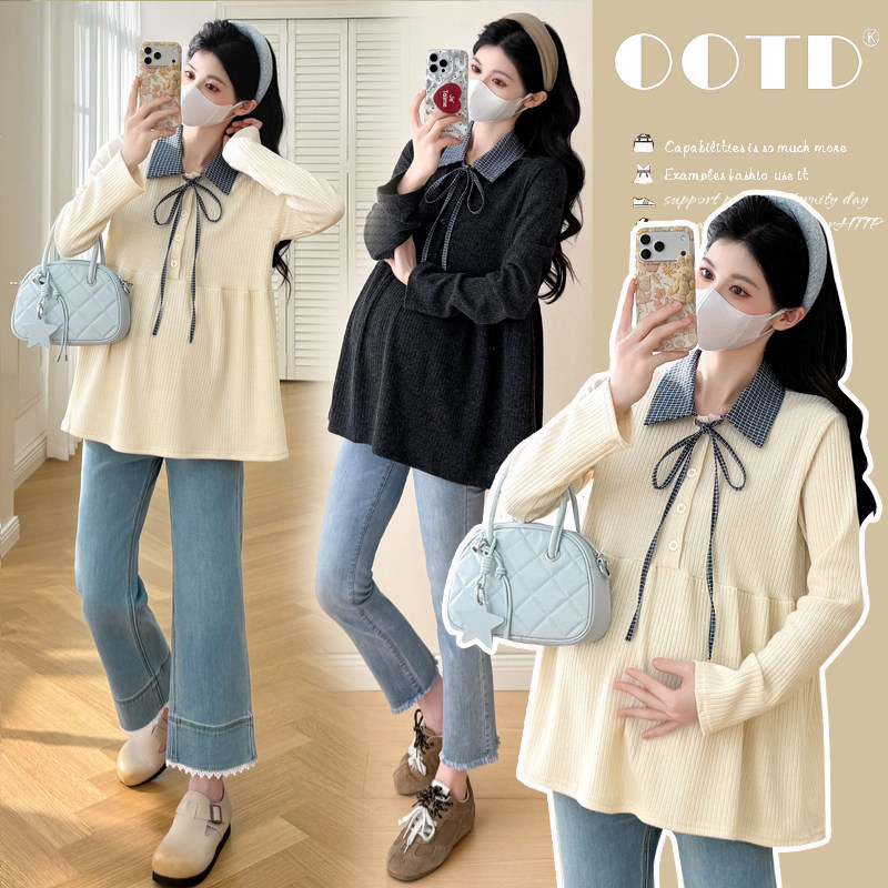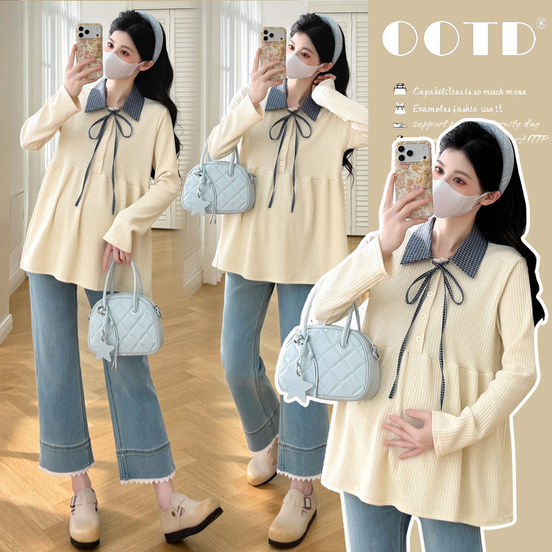 大码孕妇春秋新款时尚POLO领娃娃衫宽松显瘦针织上衣衬衫200斤潮