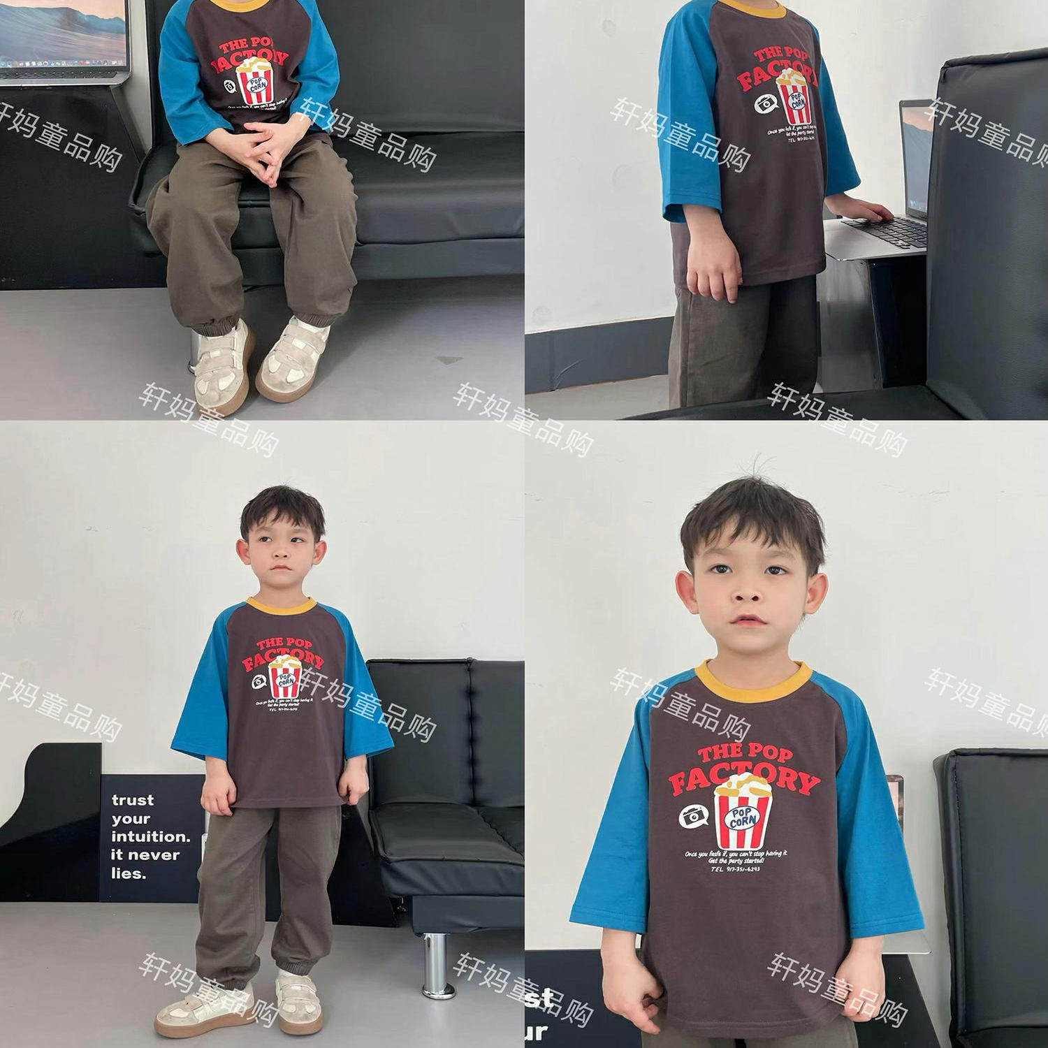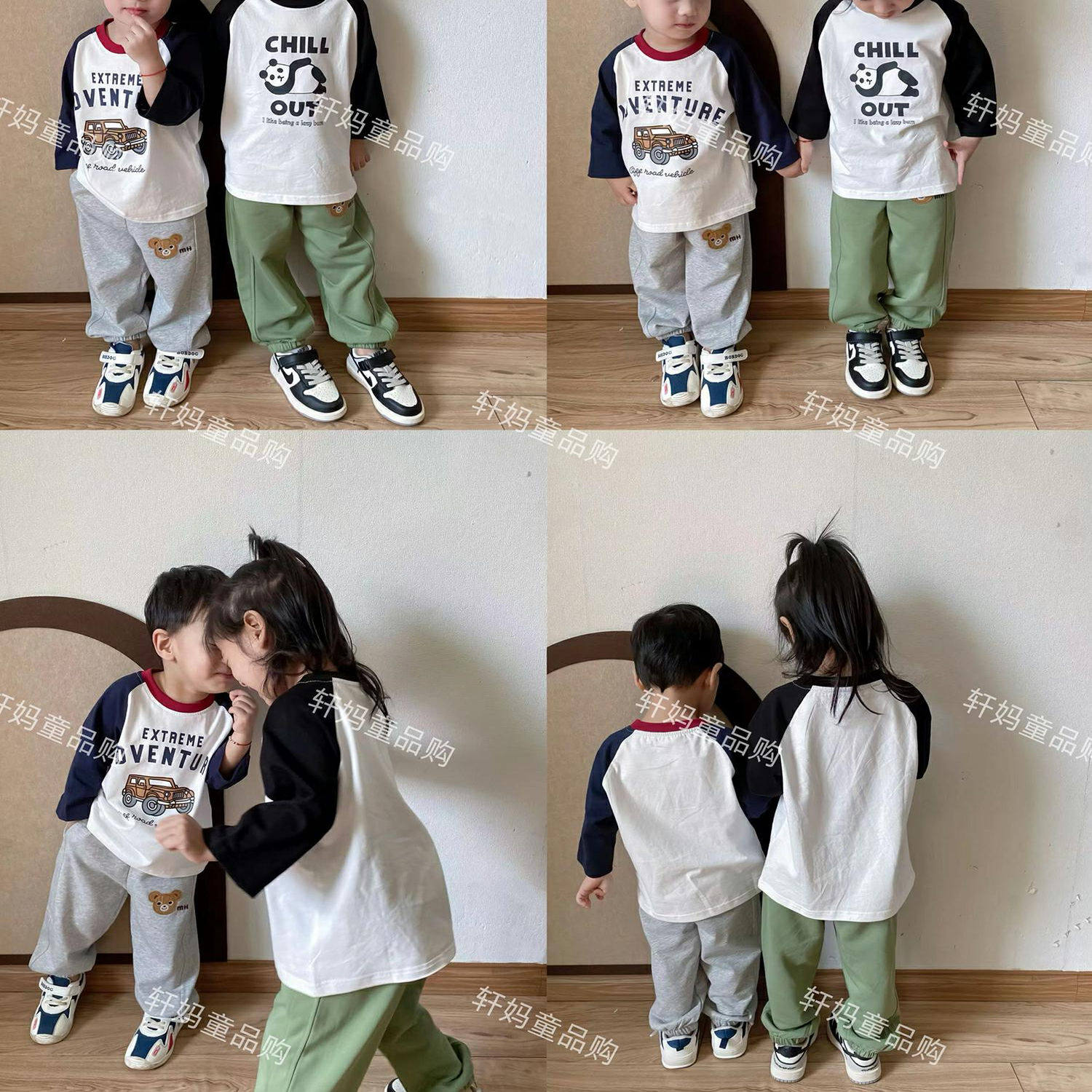 男女童春秋日单纯棉七分袖