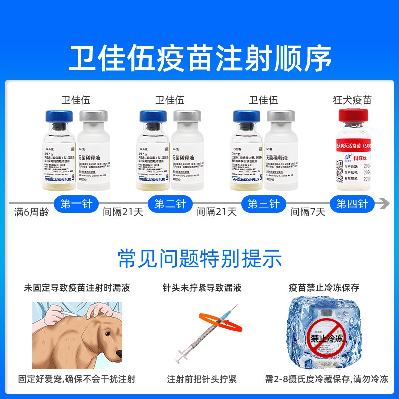美国辉瑞硕腾卫佳5疫苗+狂犬疫苗狗用幼犬卫佳五宠物狗狗四联疫苗