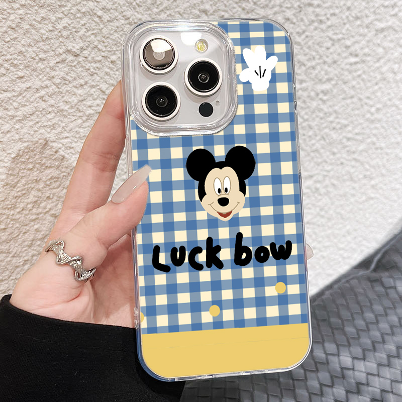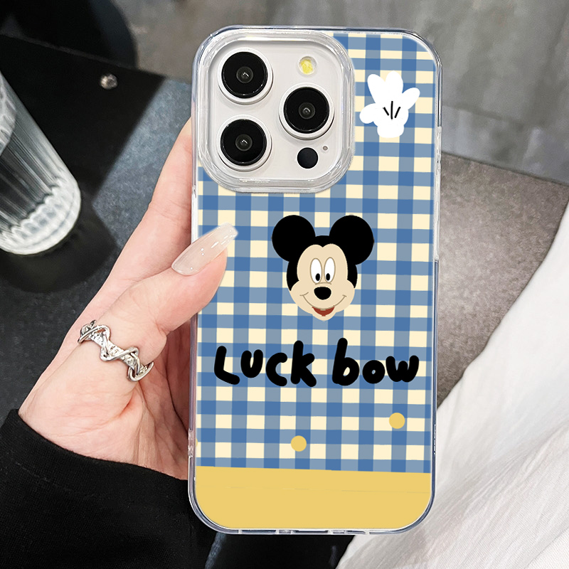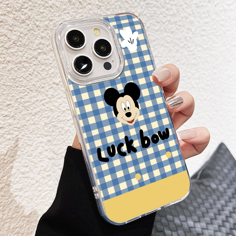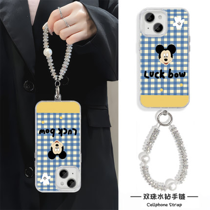 16PLUS苹果12华为PURA80硬羽纱iPhone17蓝白格纹米奇手机壳带挂绳小米13荣耀400PRO高级感note15适用14ProMax
