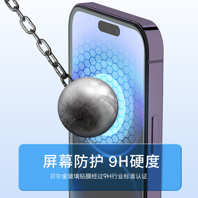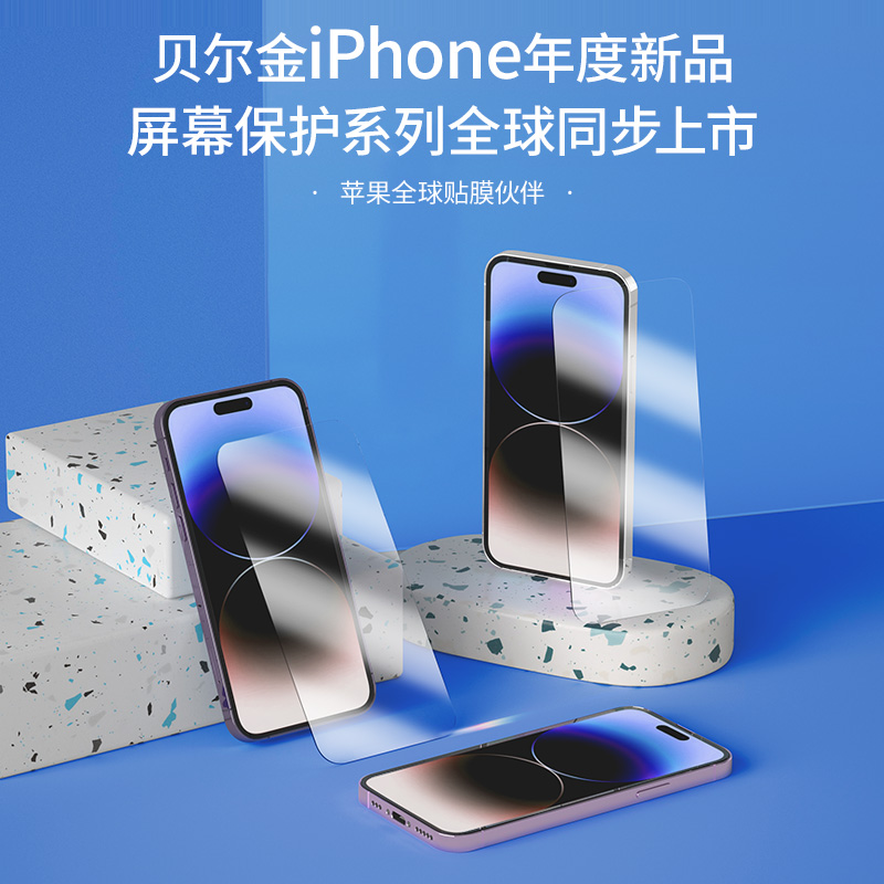 Belkin贝尔金适用iphone14钢化膜手机兼容iphone13promax防尘贴膜抗指纹plus防摔保护高清透明抗菌膜