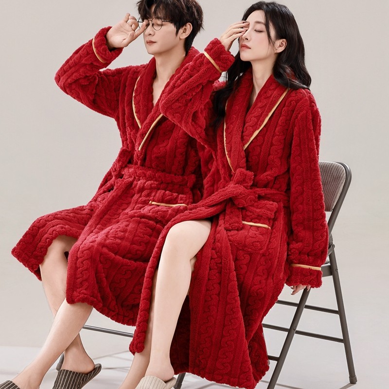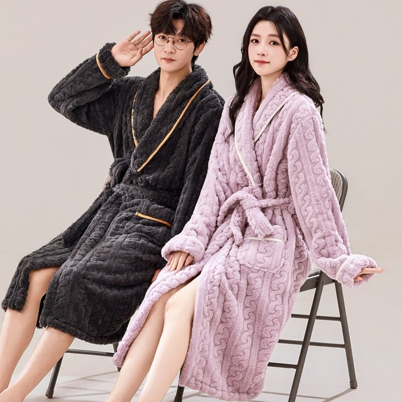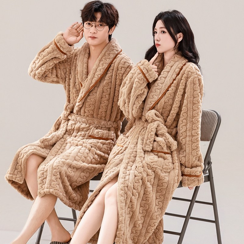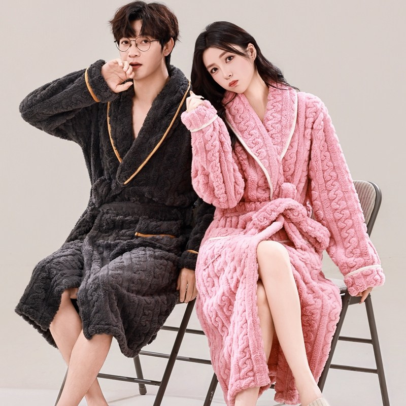 情侣秋冬睡袍中长款女加厚珊瑚绒睡衣法兰绒男保暖奢华浴袍晨袍