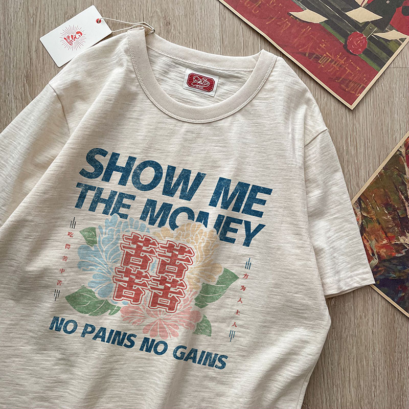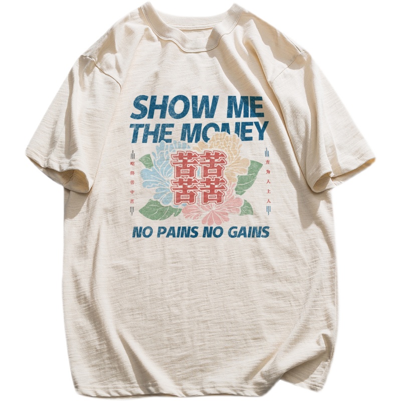 谢先绅 苦多了成囍 80年代土味国潮 做旧复古竹节棉t恤短袖文化衫