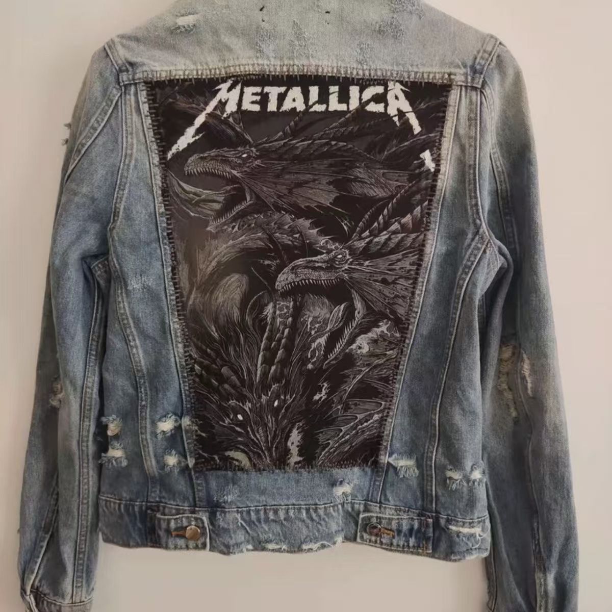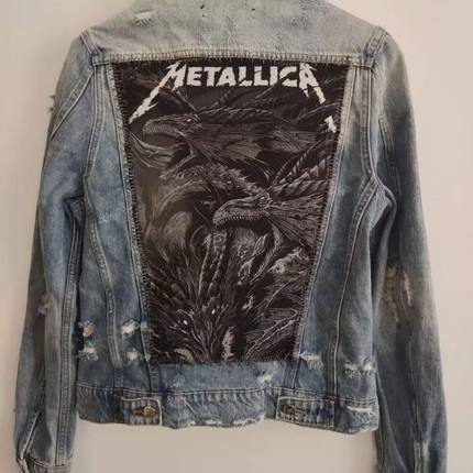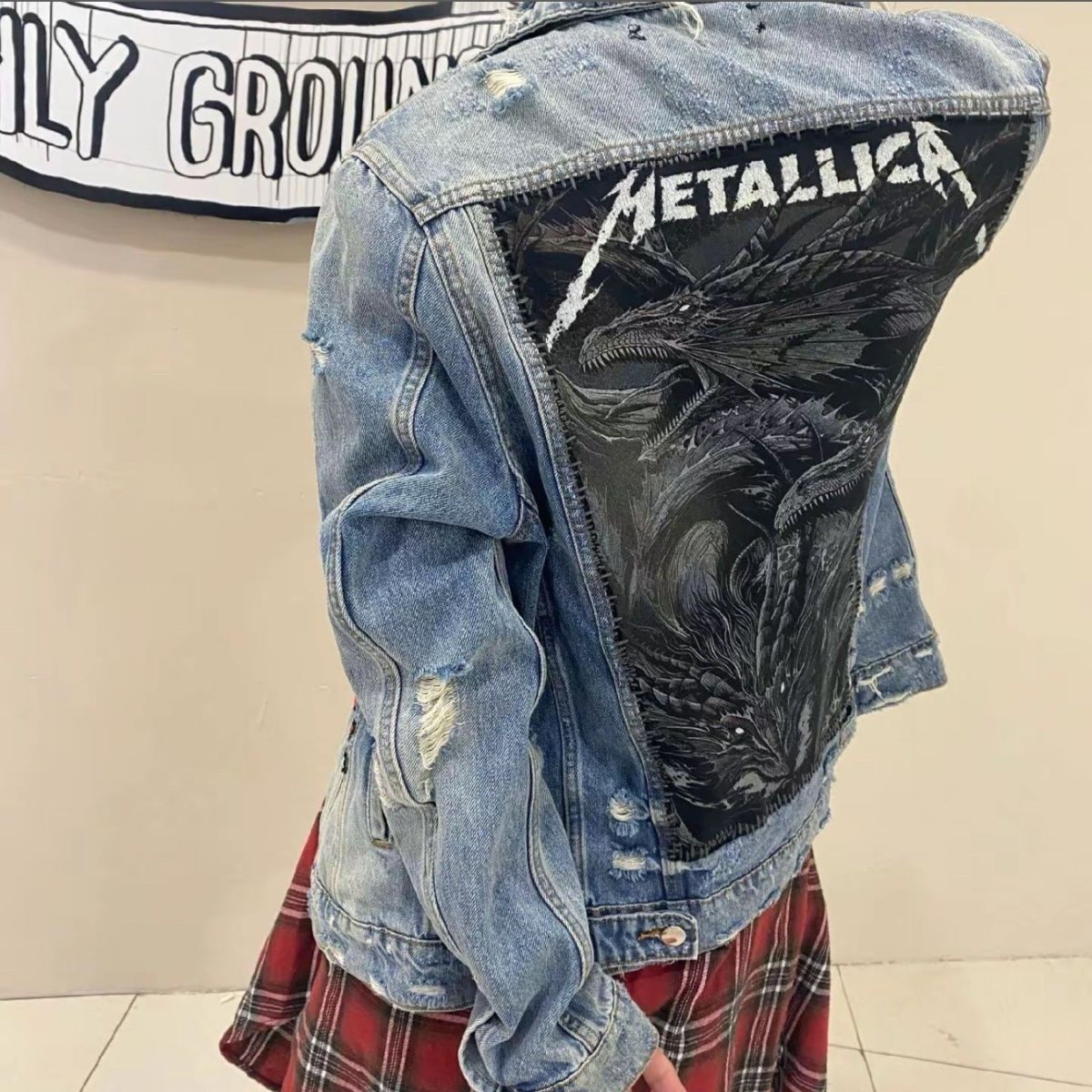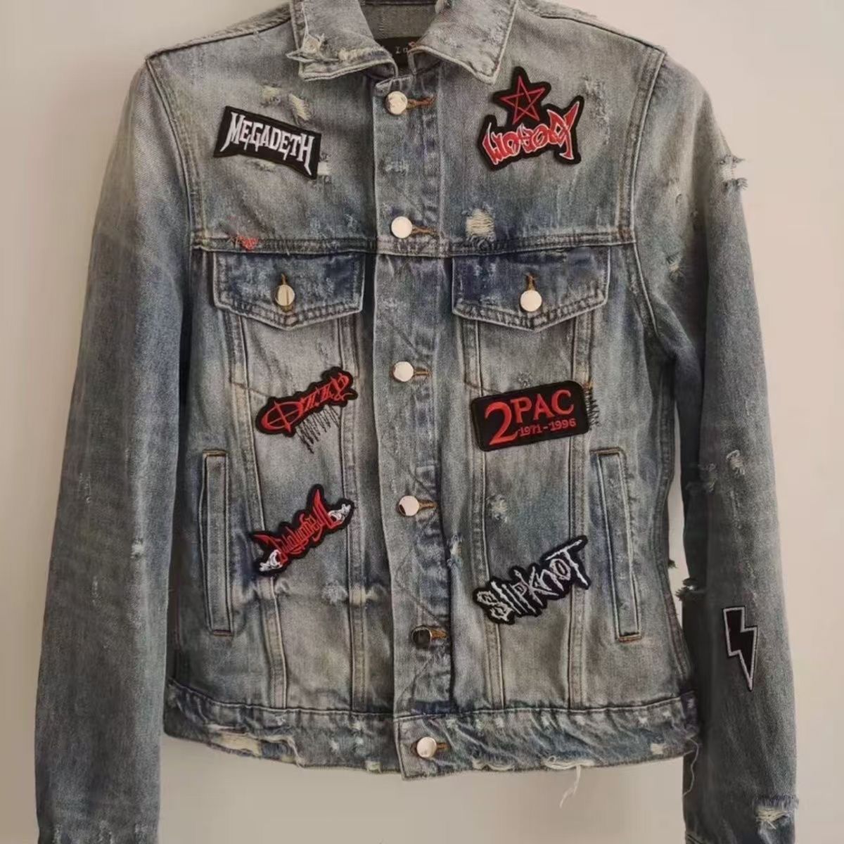 背杀美式贴布春秋牛仔轻奢外套潮流高街潮牌复古破洞水洗刺绣夹克