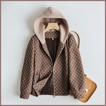 乔妮塔品牌女装2025春秋新款连帽长袖短款加厚休闲格纹小个子外套