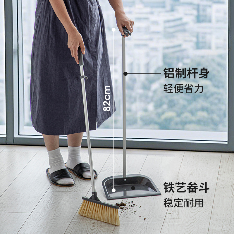 霜山扫把簸箕家用套装铝杆笤帚卡扣式扫把轻便耐用不沾灰扫地扫帚