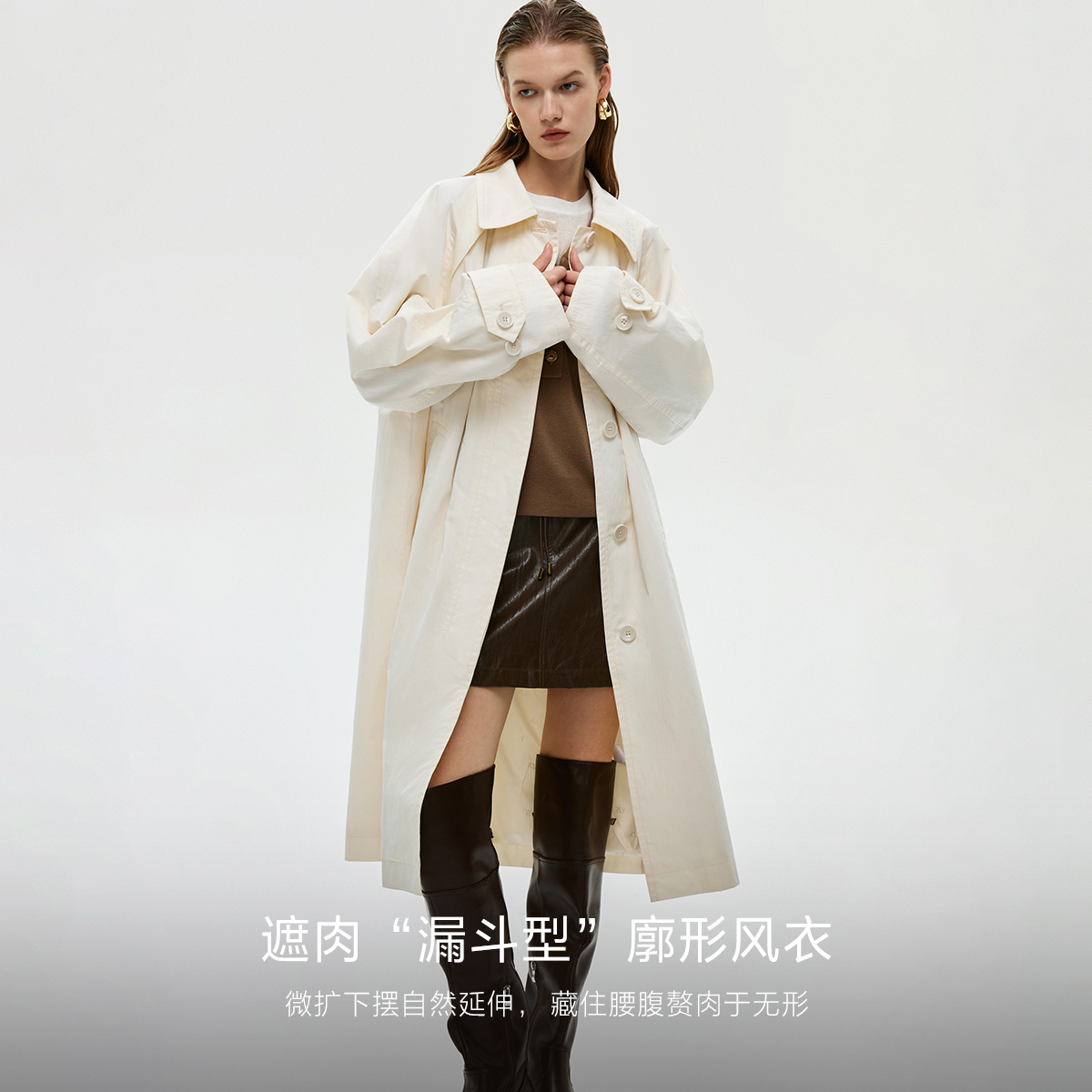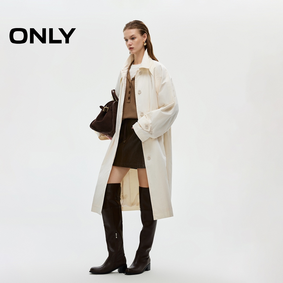 绫致ONLY2025秋冬新款双层隐形门襟翻领插肩风衣外套女