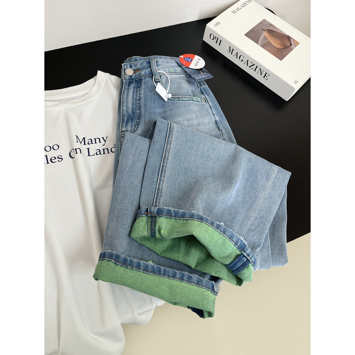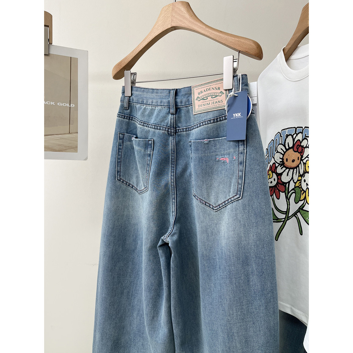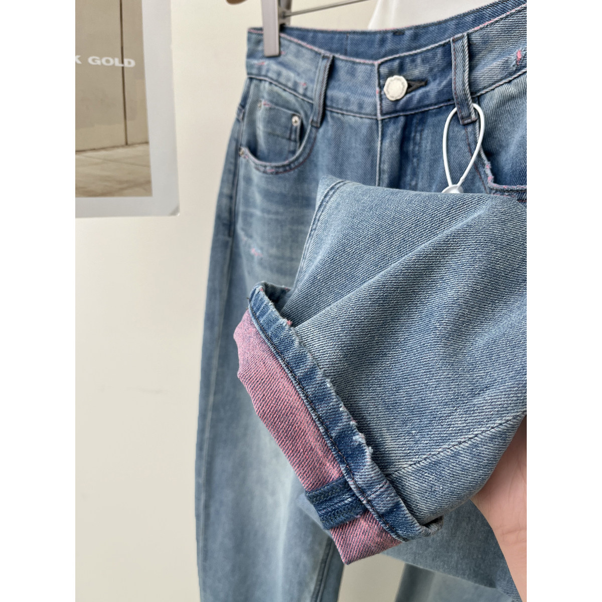 双色织水洗做旧牛仔裤女春季新款宽松显瘦百搭哈伦裤九分阔腿裤子