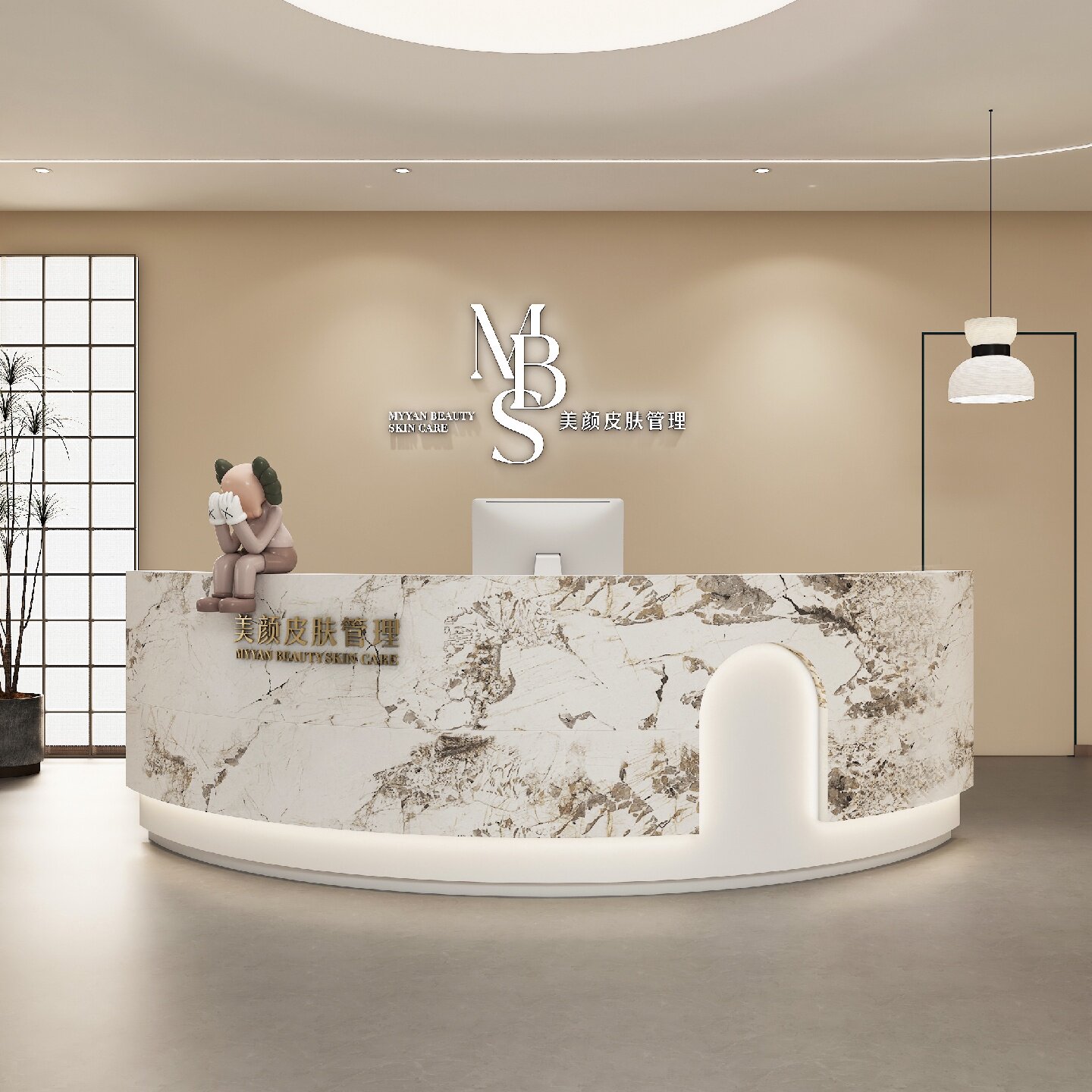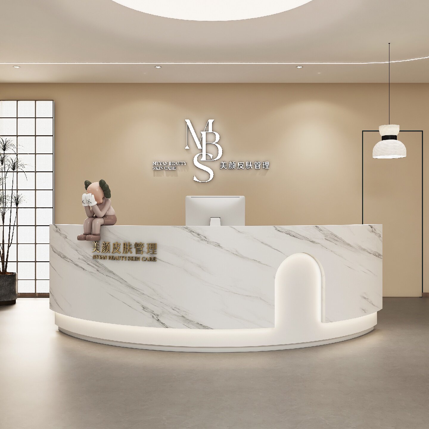 美容院收银台服装店吧台简约现代轻奢前台圆弧酒店公司烤漆接待台