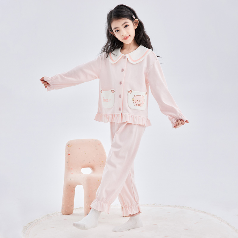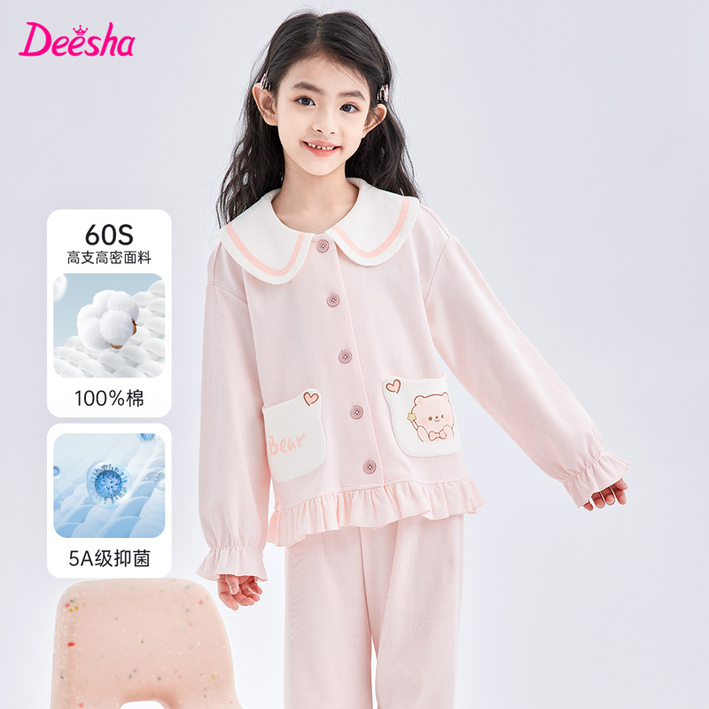 DEESHA/笛莎女童春夏款睡衣儿童纯棉家居服套装A类抑菌女宝宝开衫