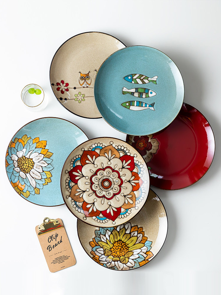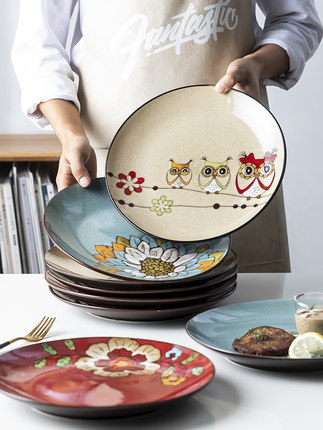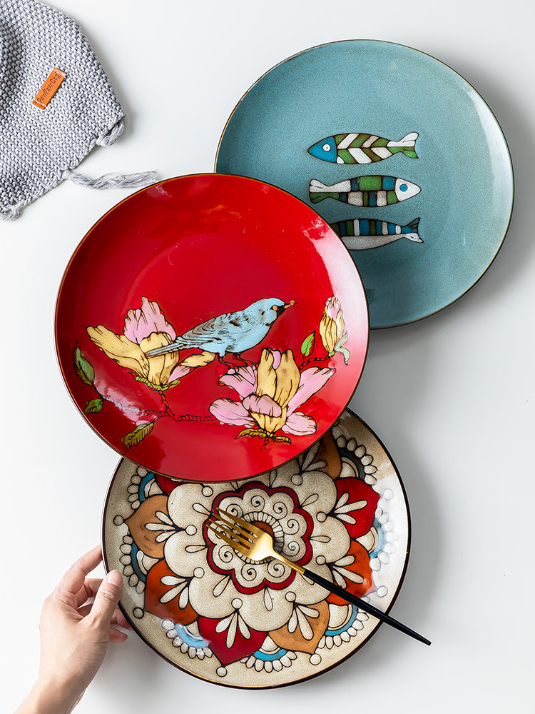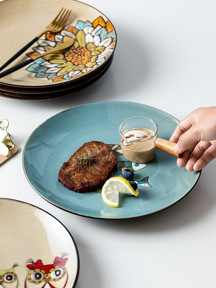 欧式圆形大盘陶瓷手绘釉下水果创意蛋糕架果盘牛排盘北欧平盘西餐