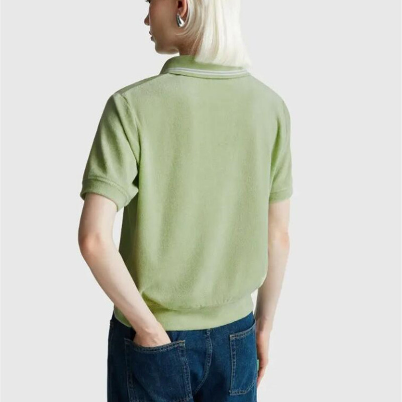坚持原单尾货 意大利贝纳通官网新款 雪尼尔毛巾布女士短袖polo衫