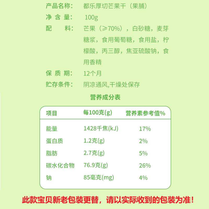 DOLE厚切大片芒果干100g*3