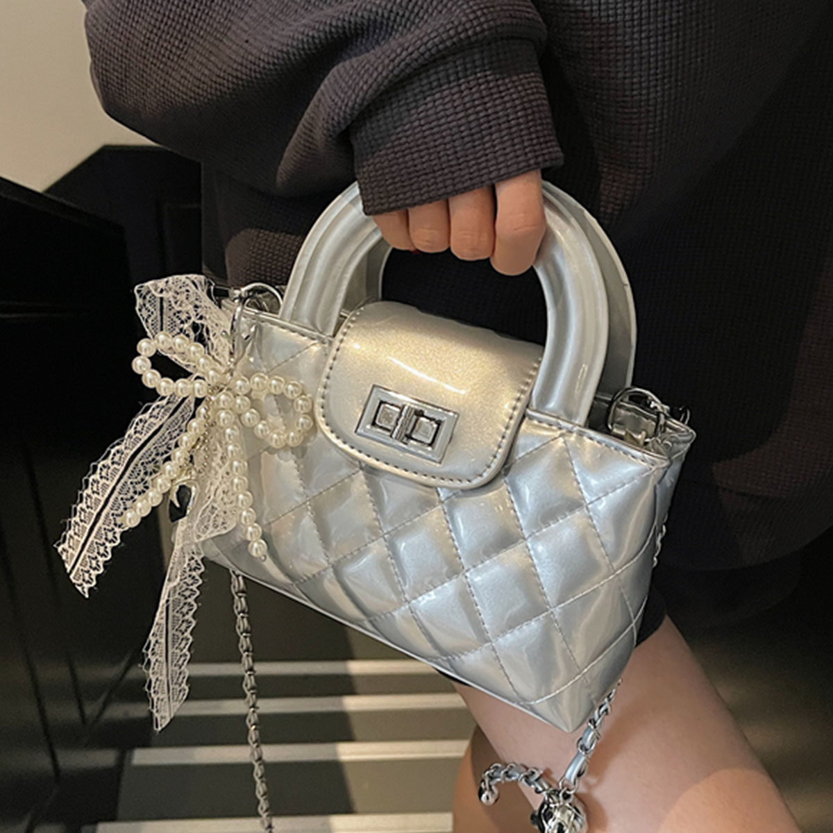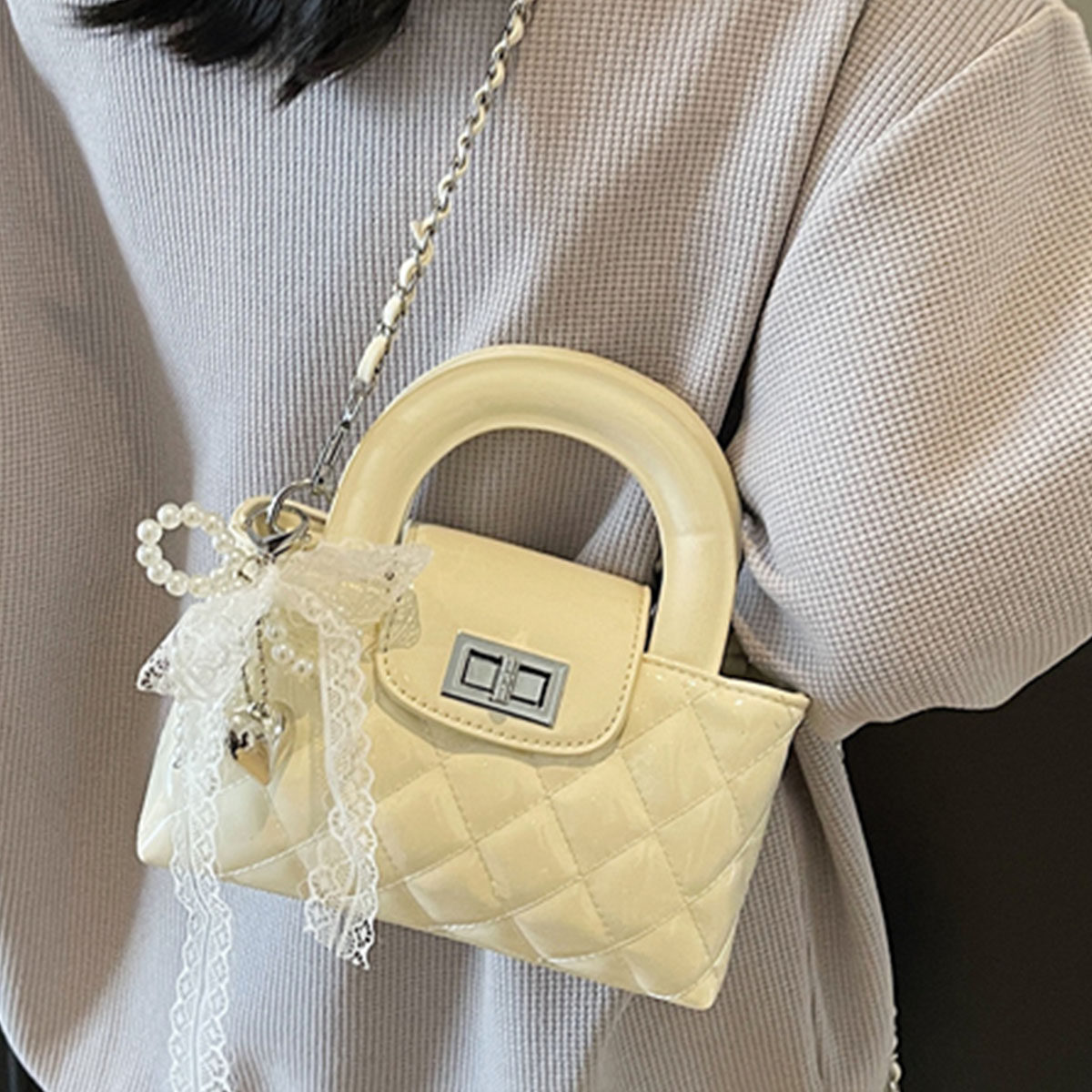高级感小香风手拎小方包2025春夏新款韩版时尚菱格单肩包百搭女包