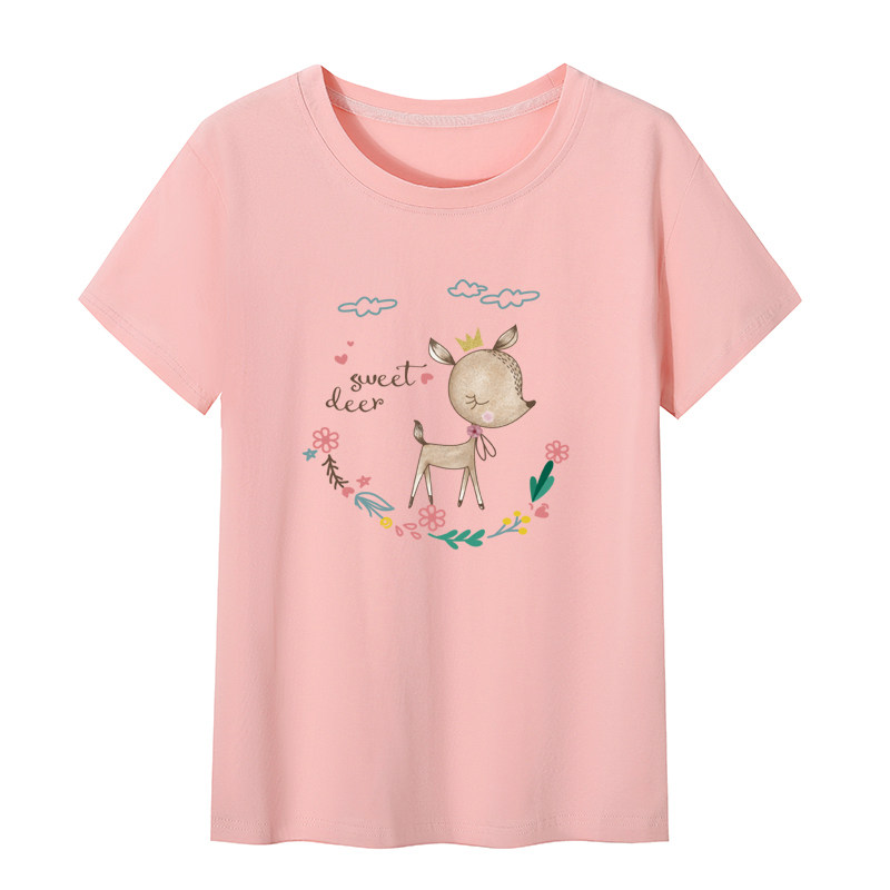 23新款夏装宽松纯棉短袖t恤女装加大码半袖粉色上衣夏季学生上衣