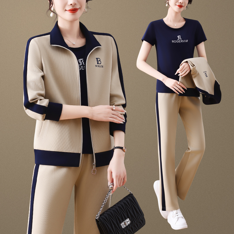 时尚休闲运动套装女士春秋新款短款连帽卫衣阔腿裤洋气拼色三件套
