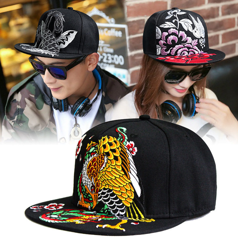 中国风潮爆男女歌手可调节彩色刺绣棒球帽嘻哈街舞帽平沿帽街头帽