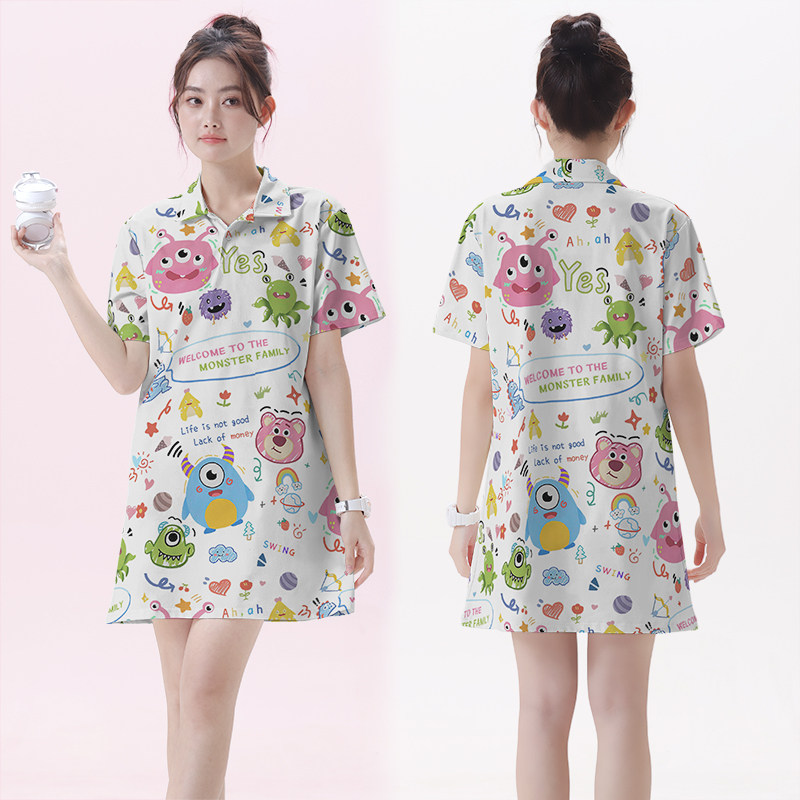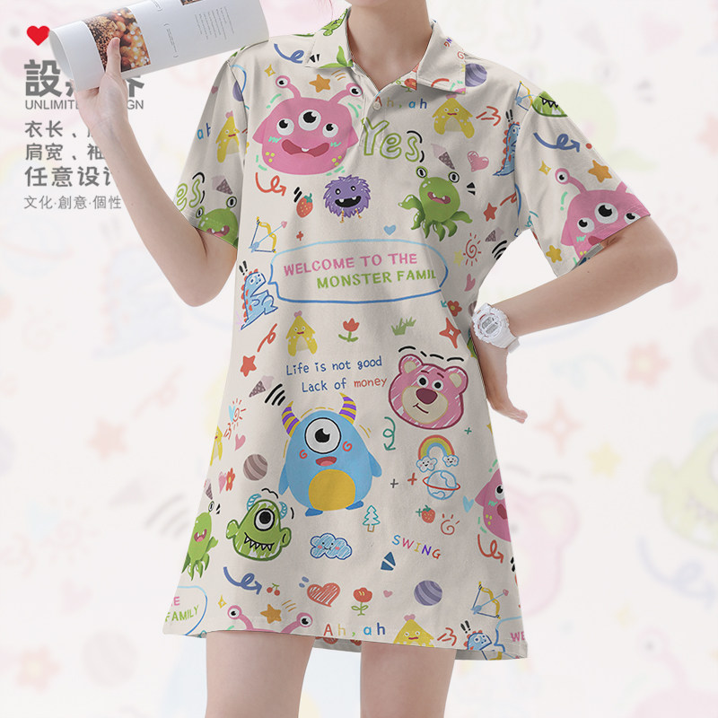 卡通动漫怪兽家族草莓小熊涂鸦POLO领连衣裙裙子短裙0017设 无界