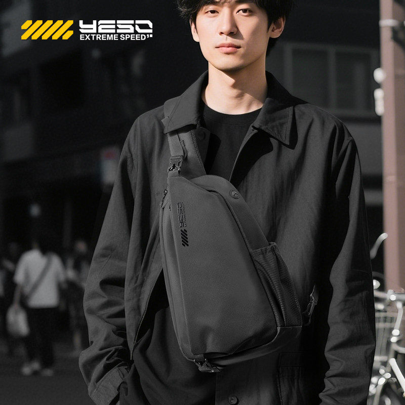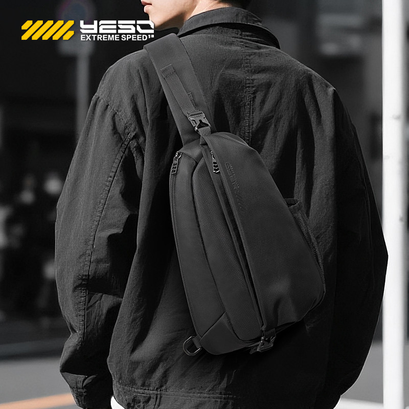 YESO男士单肩斜挎包休闲商务通勤胸包精致大容量轻便防水男包背包