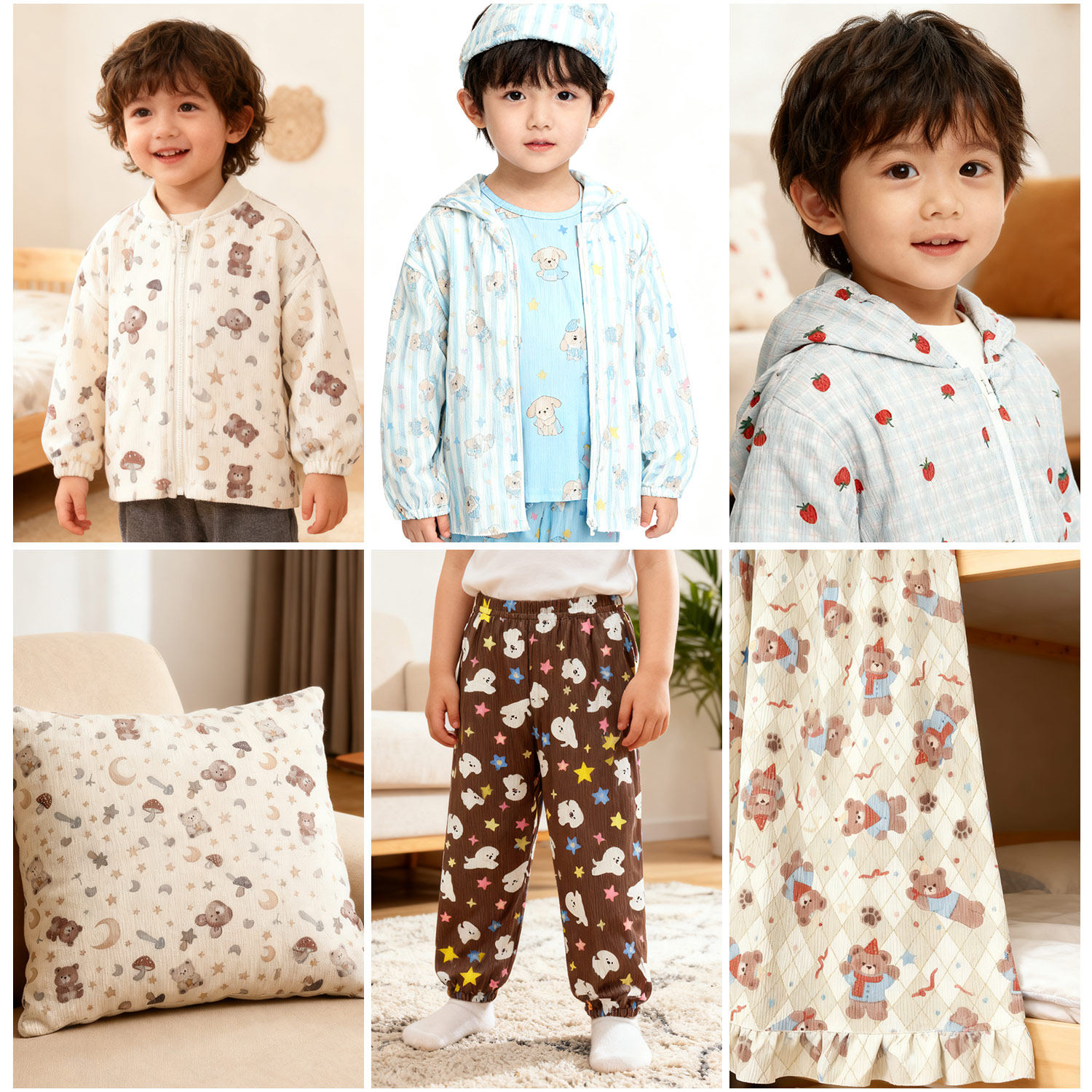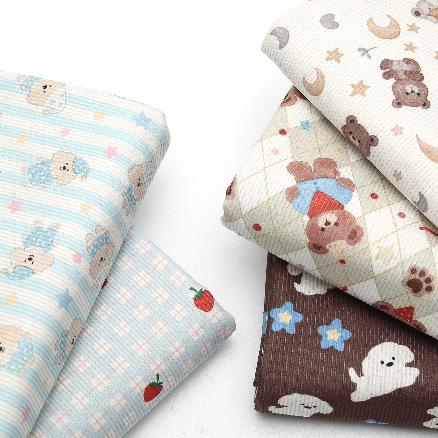 加厚灯芯绒布料卡通印花细条绒秋冬棉衣裤连衣裙童装手工diy面料