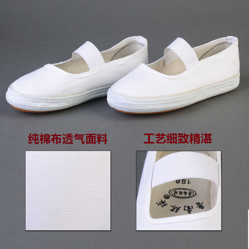 学生白布鞋幼儿园女童小白鞋儿童体操鞋舞蹈演出鞋宝宝白色帆布鞋