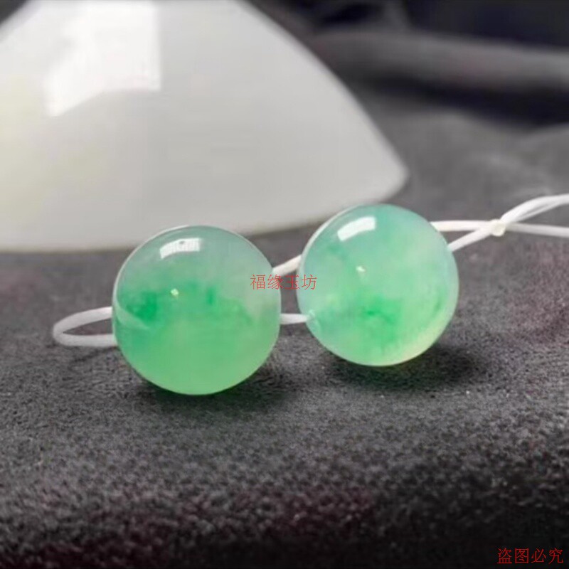 精品缅甸翡翠冰种浅绿色圆珠散珠