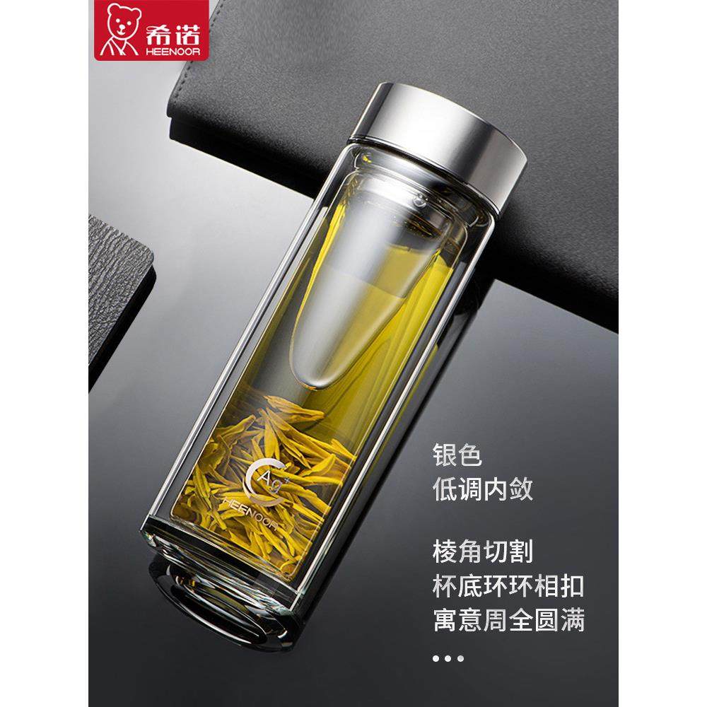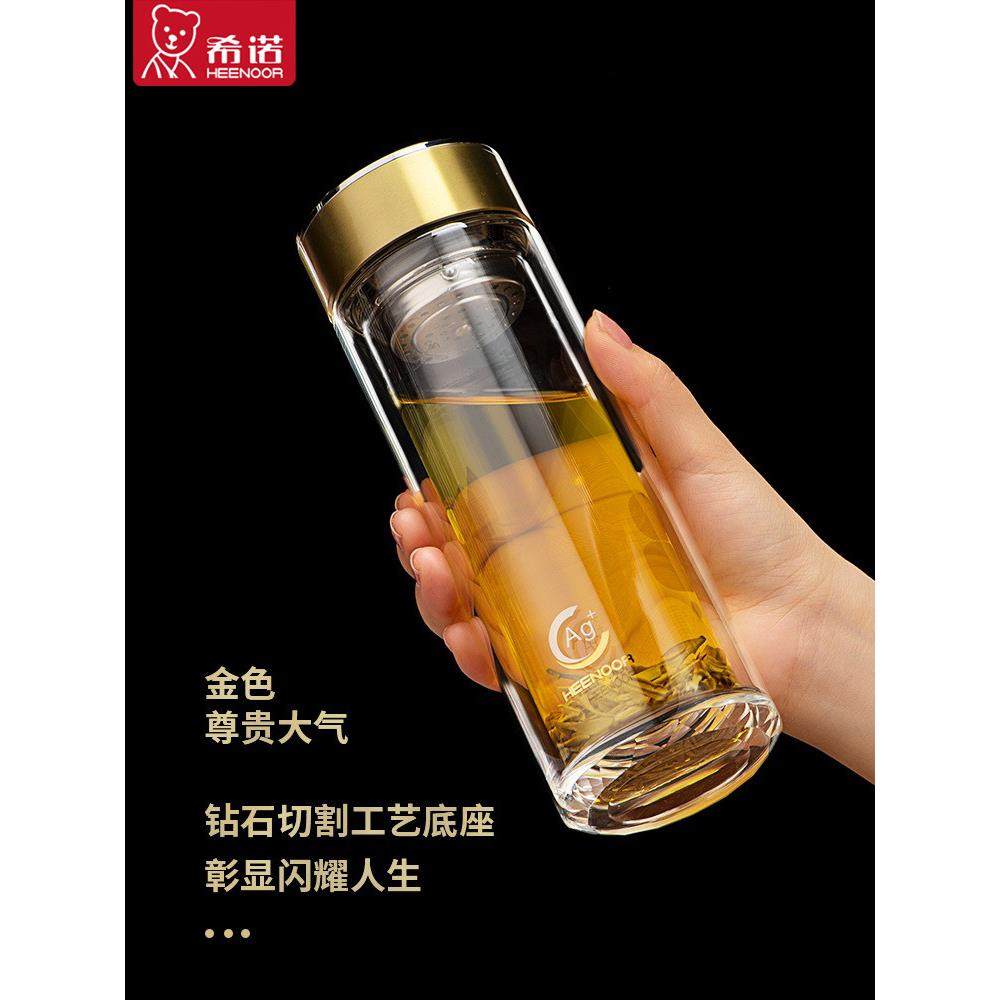 希诺双层抗菌玻璃杯2025年新款男女士高档杯子金色水杯带盖茶杯