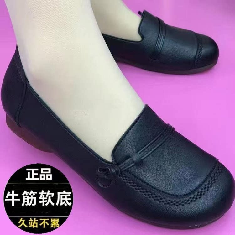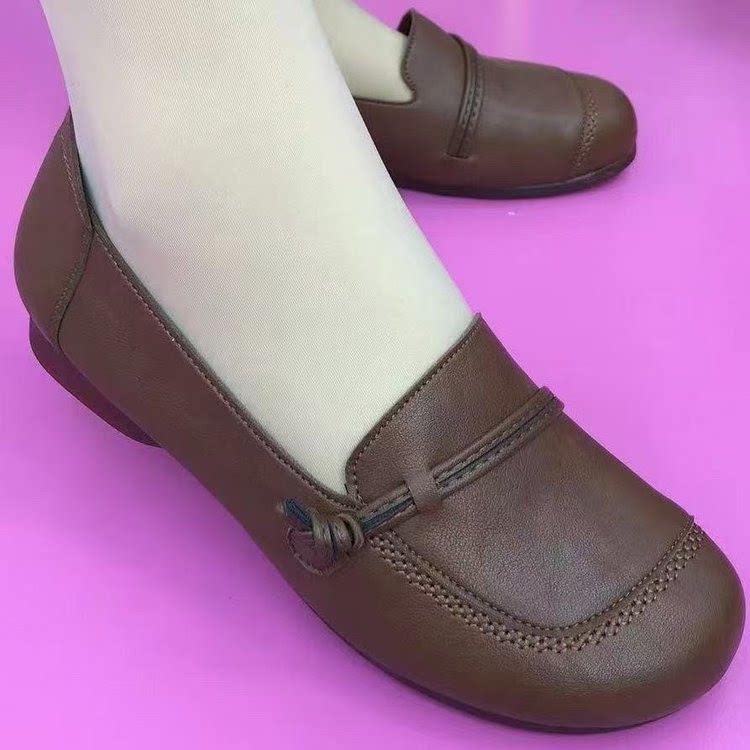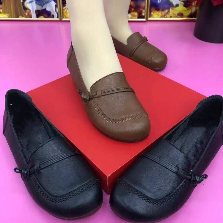 软皮软底单鞋女春夏季浅口一脚蹬平跟圆头舒适百搭妈妈鞋轻便女鞋