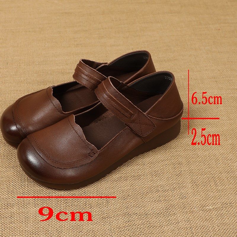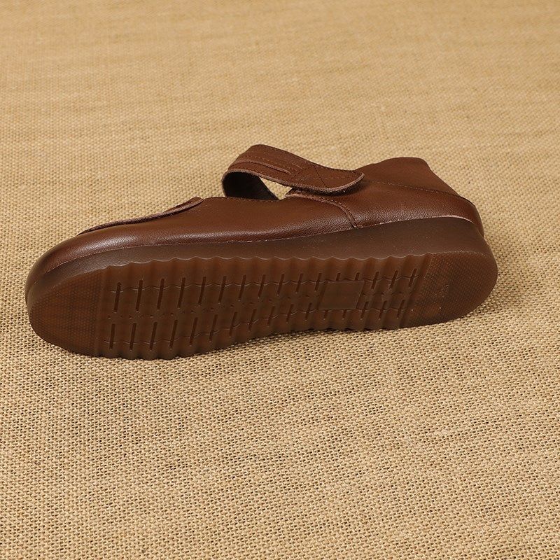 牛筋底妈妈鞋春秋平跟浅口休闲单鞋D女复古真皮软底防滑中老年皮
