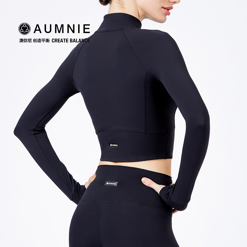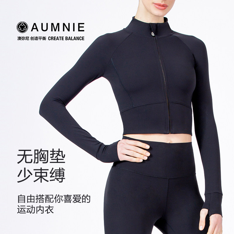 AUMNIE澳弥尼露脐裸感修身弹力夹克长袖健身训练运动瑜伽紧身服女