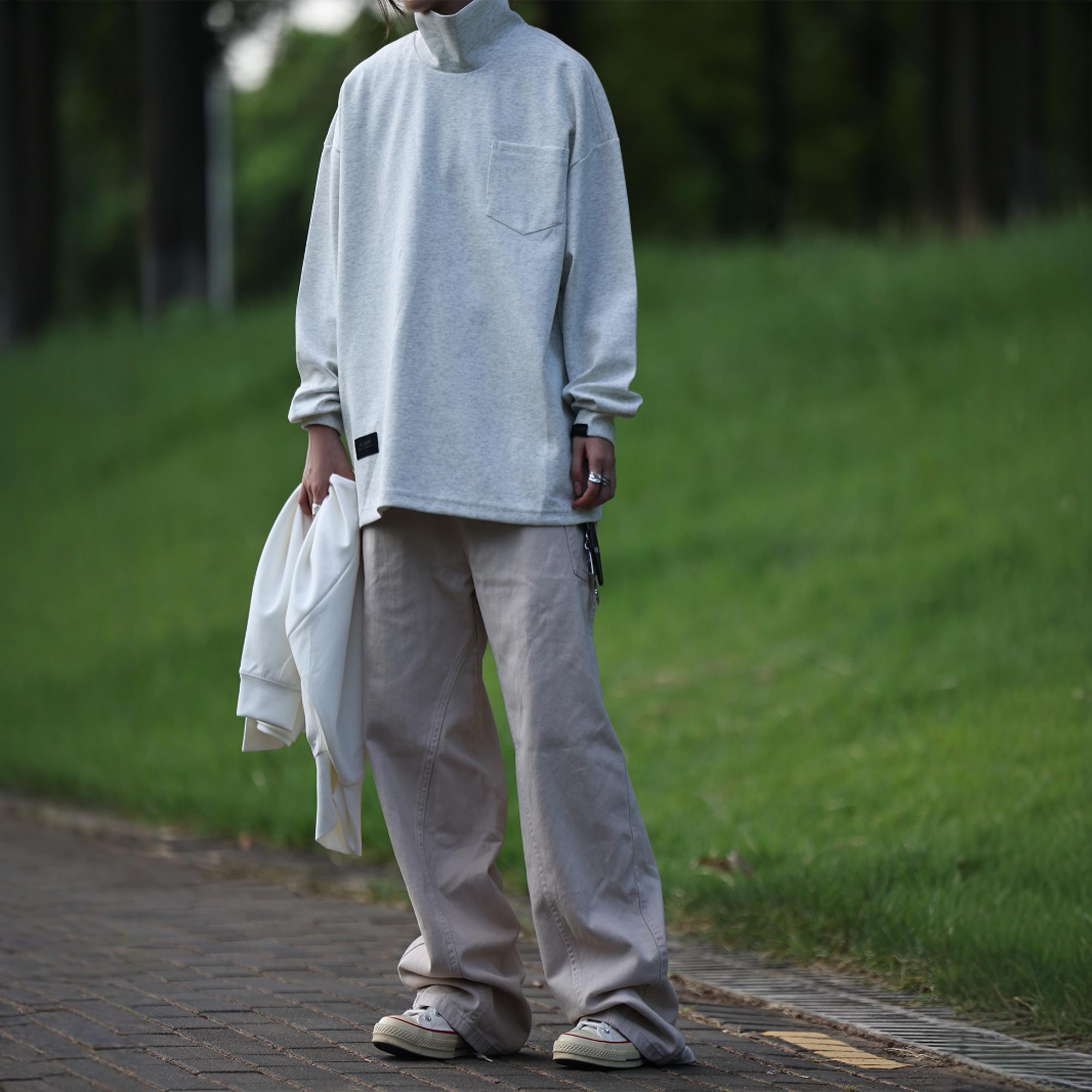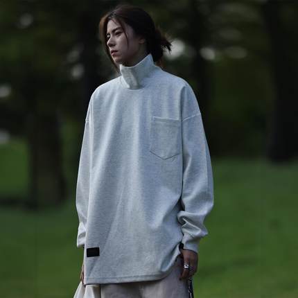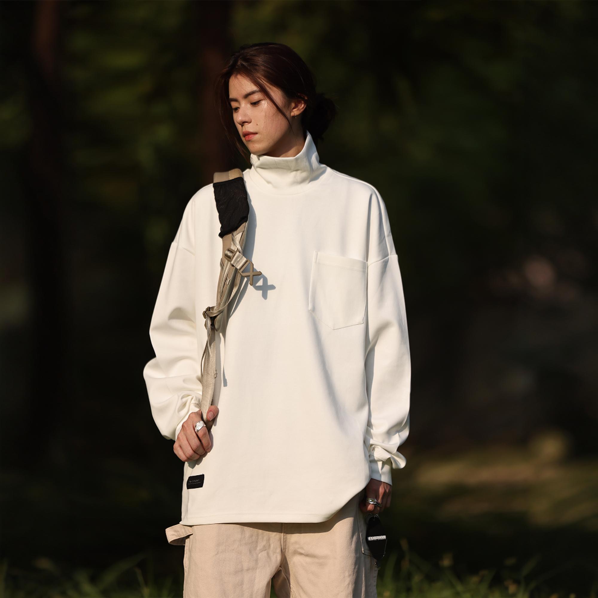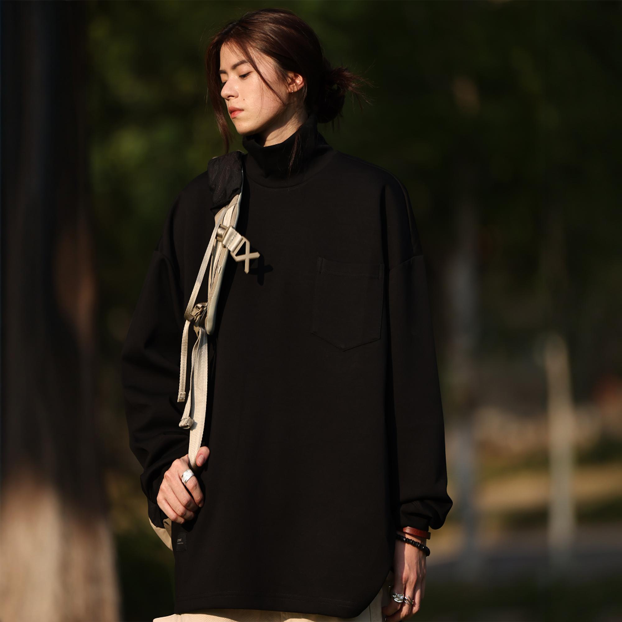 Nobodyknows日系基础打底衫纯色高领简约舒适百搭男女宽松长袖T恤