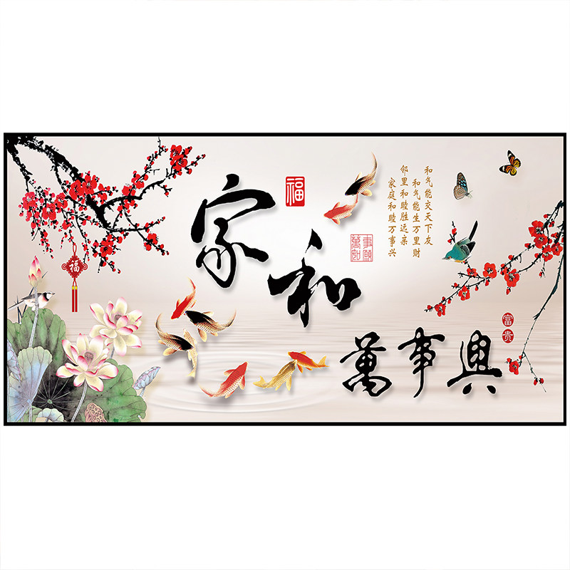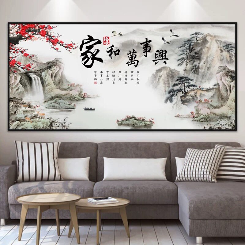 新中式客厅家和万事兴沙发背景装饰自粘壁画中国风中堂山水墙贴画