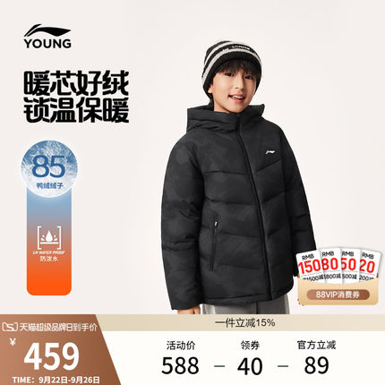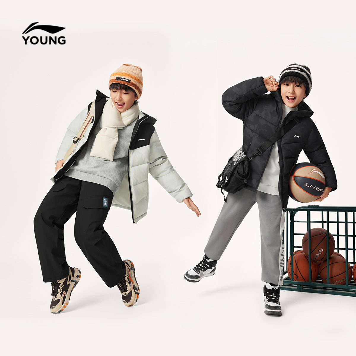 李宁童装短款羽绒服男大童25新款篮球系列连帽宽松冬季鸭绒童装