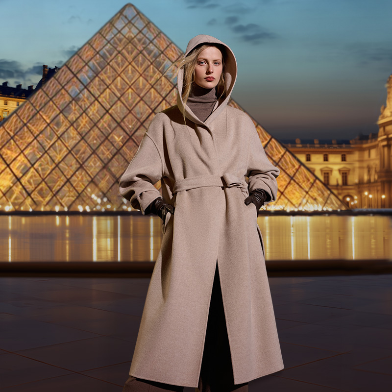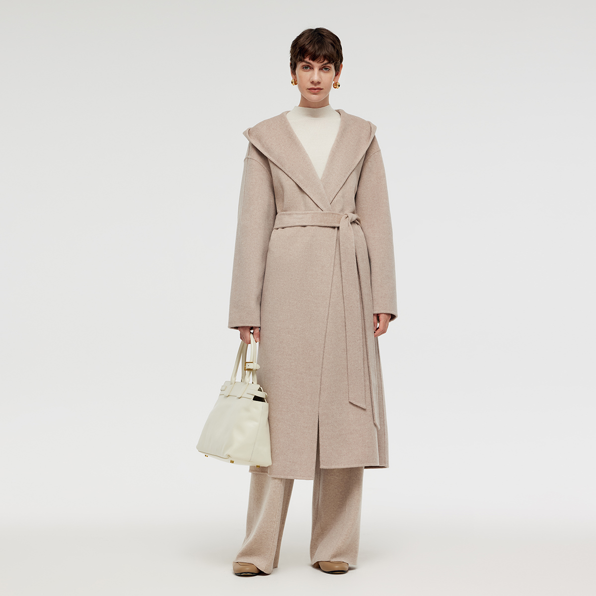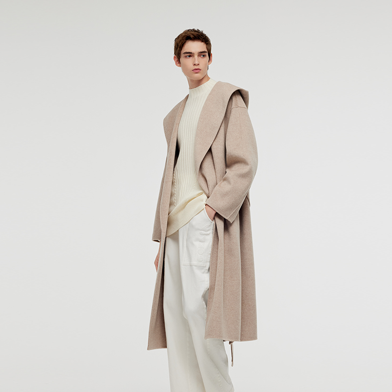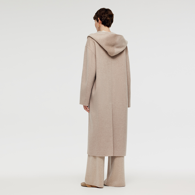 歌莉娅冬季新品羊毛羊绒连帽双面呢大衣男女同款1CCL6N2A0