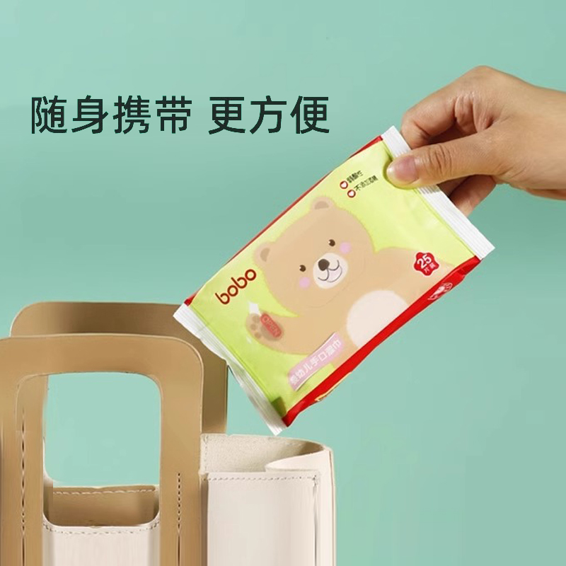 bobo新生婴幼儿手口湿巾25抽*12包儿童宝宝便携装儿童柔湿巾纸巾
