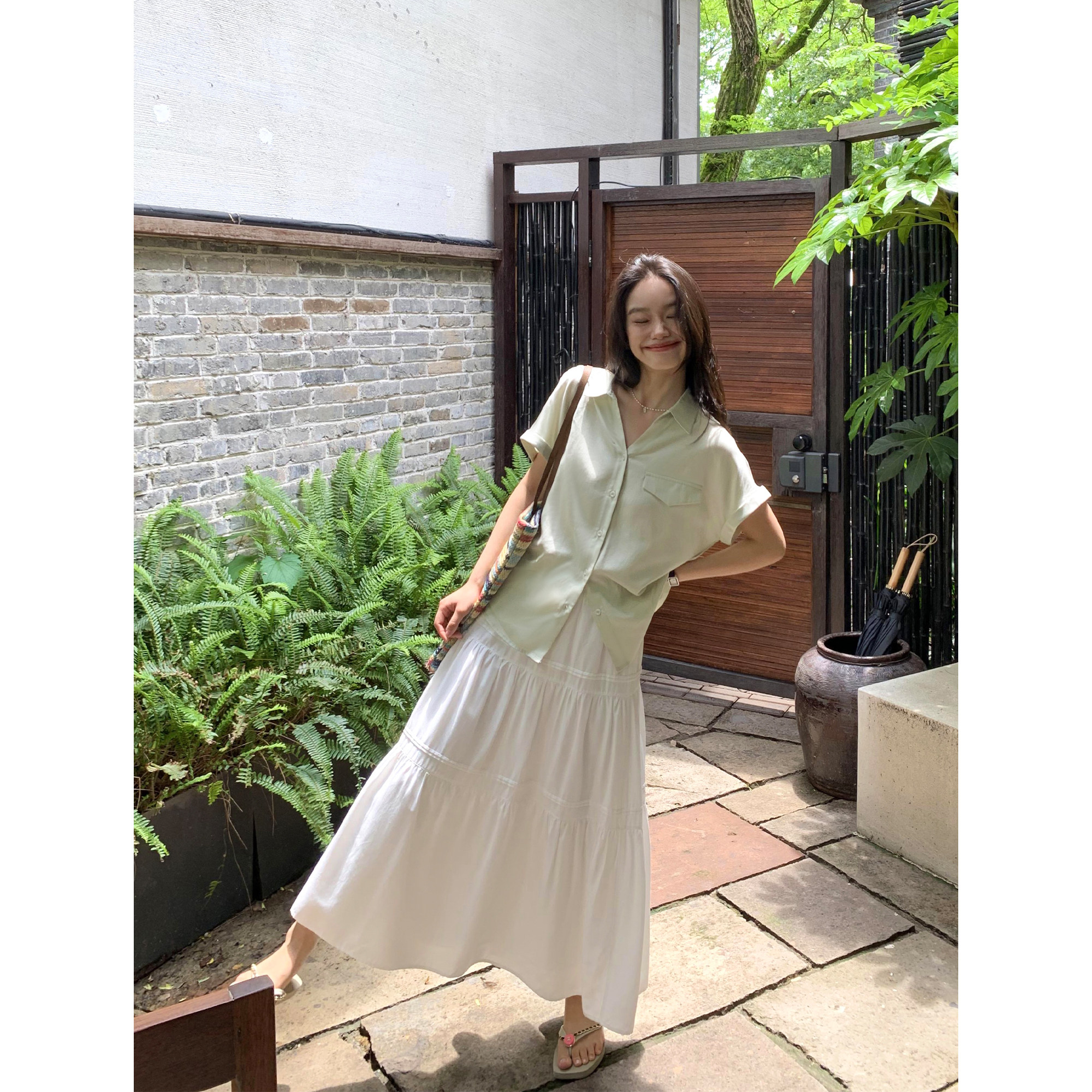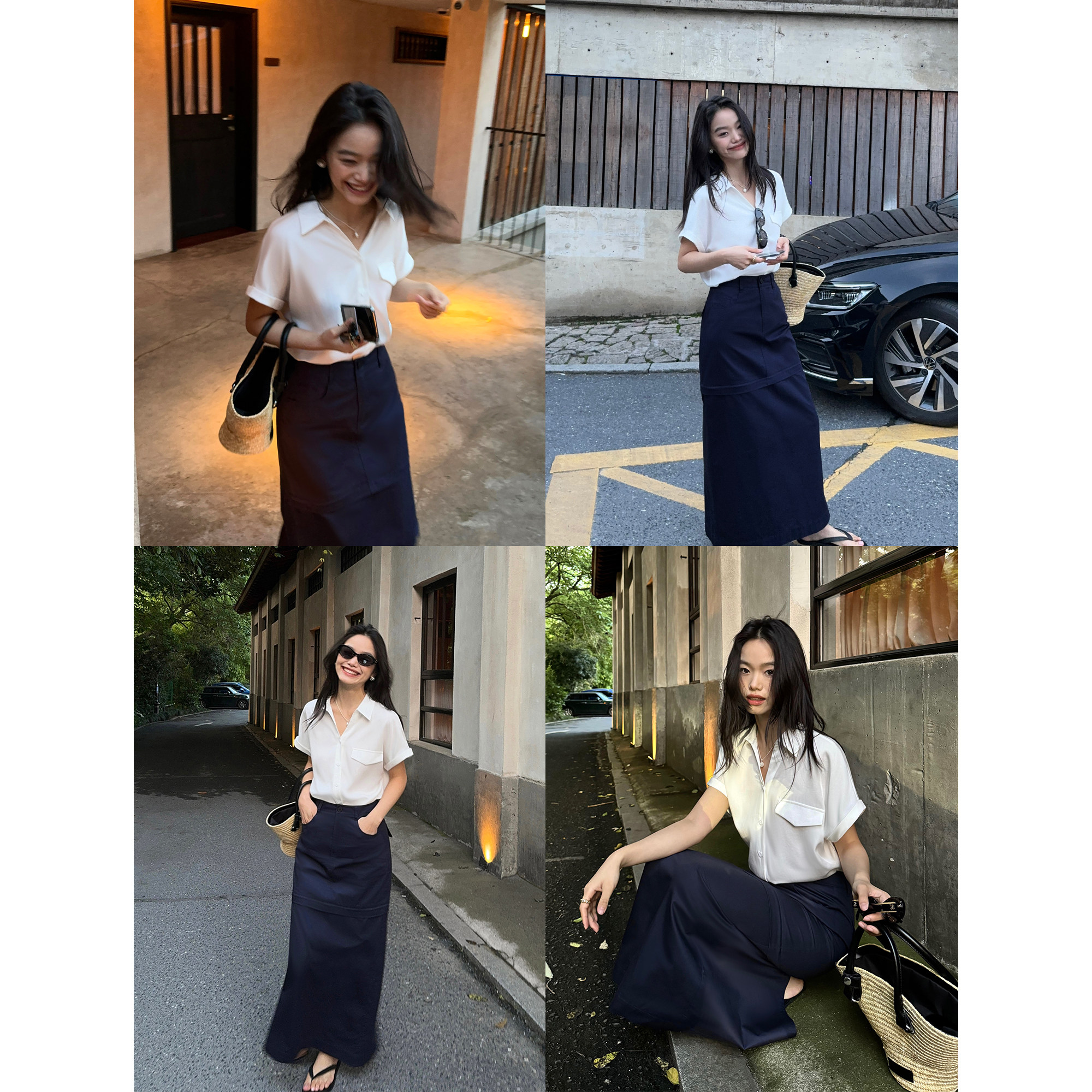 pusumede【现货5折】简约白色短袖衬衫女衬衣宽松显瘦气质上衣